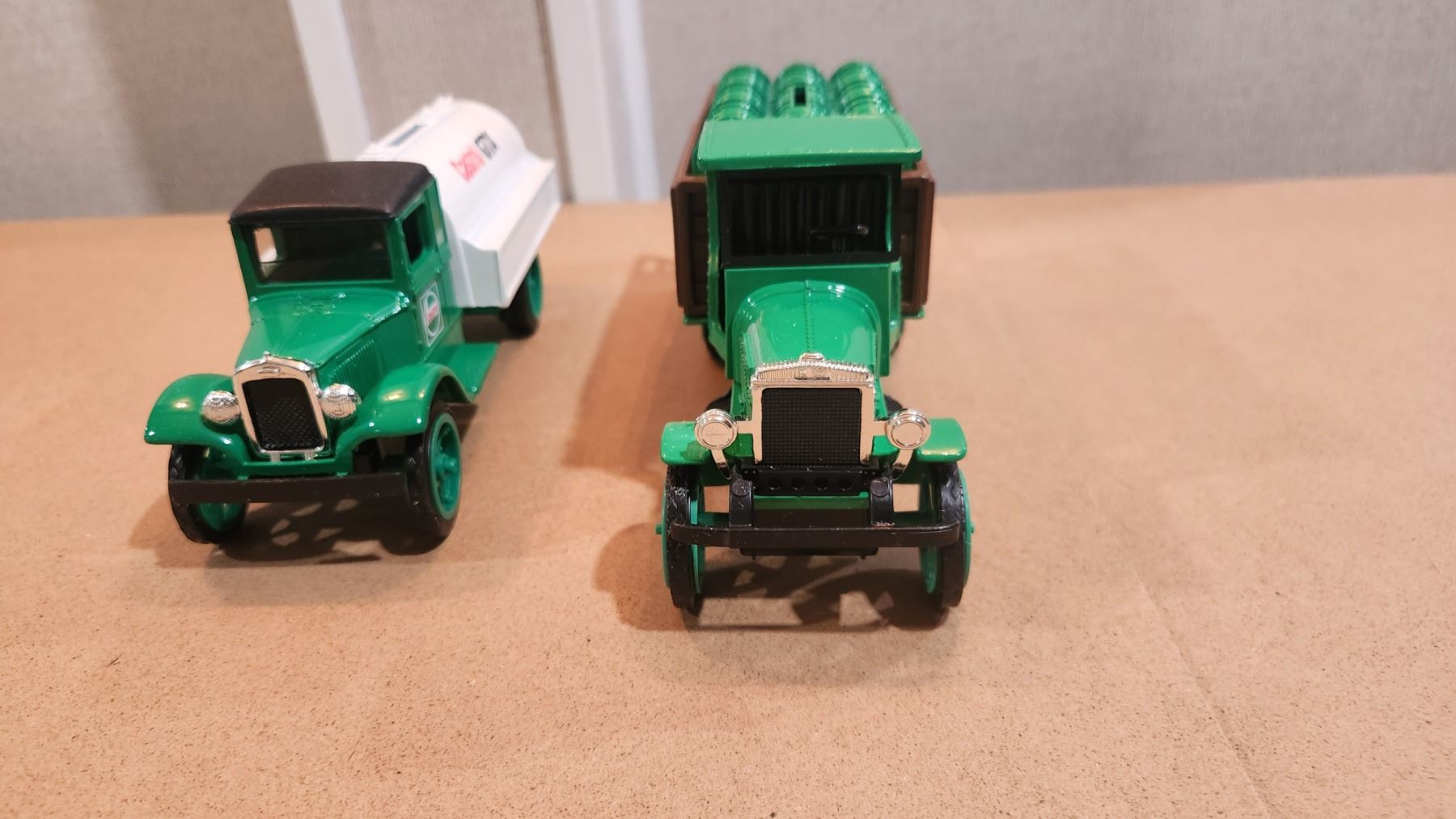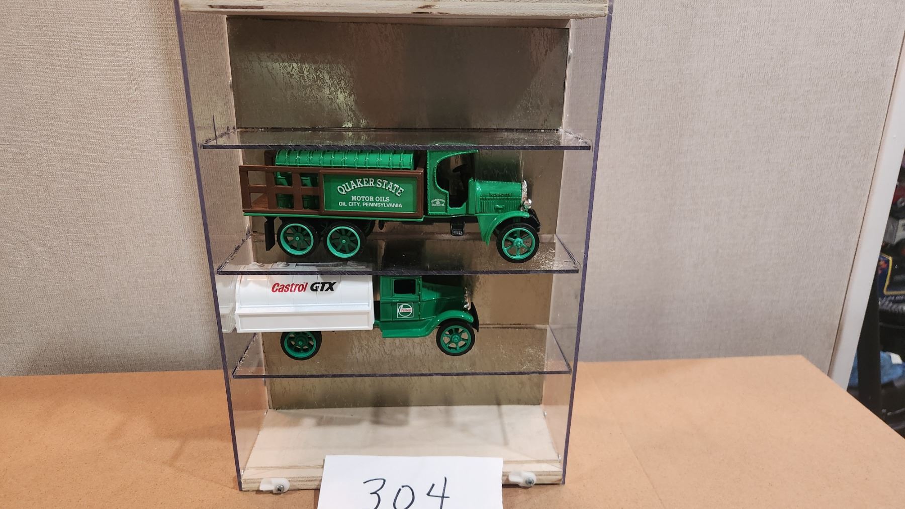 4 TIER 1/24TH DISPLAY WITH 1931 CASTROL HAWKEYE TANKER, 1925 QUAKER STATE KENWORTH.
