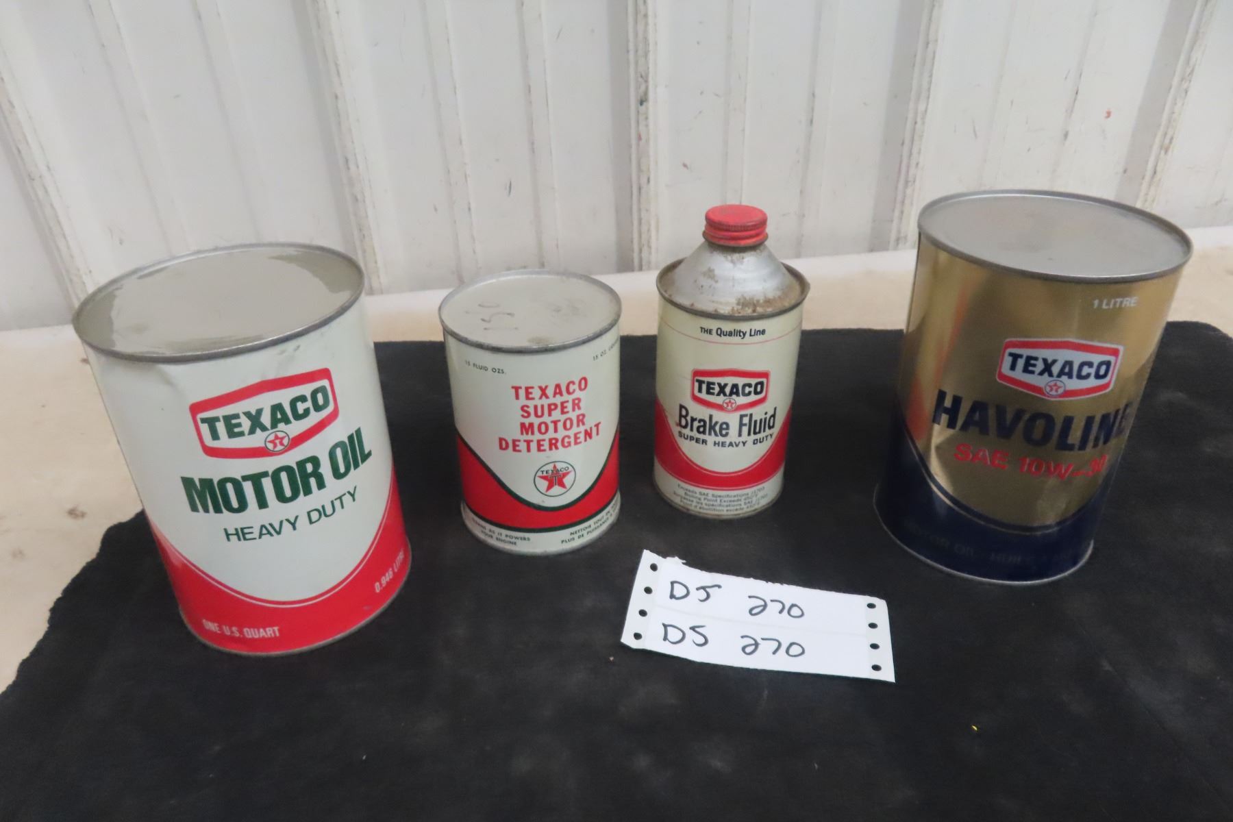 (4) Texaco Cans : Motor Oil, Motor Detergent, Brake Fluid.