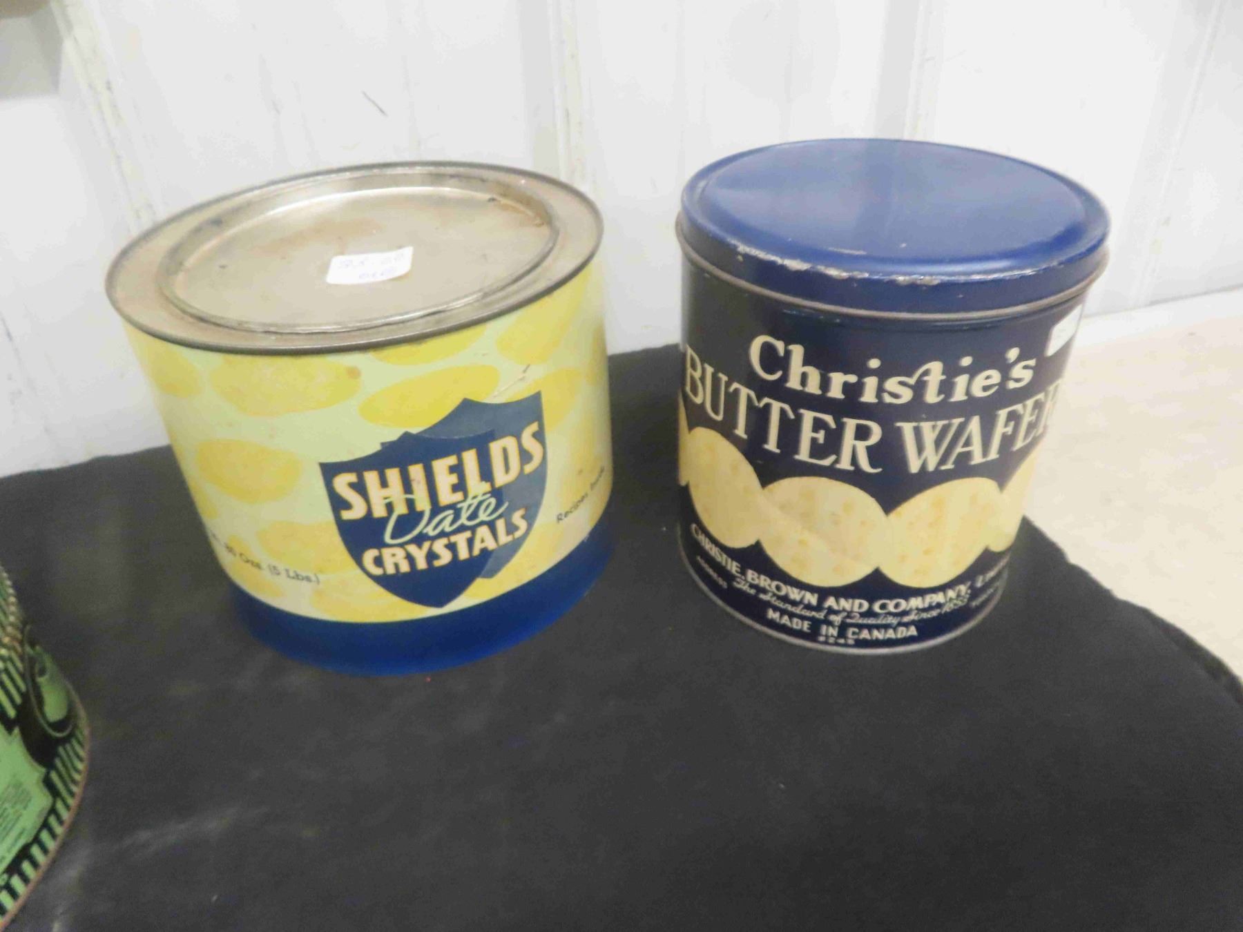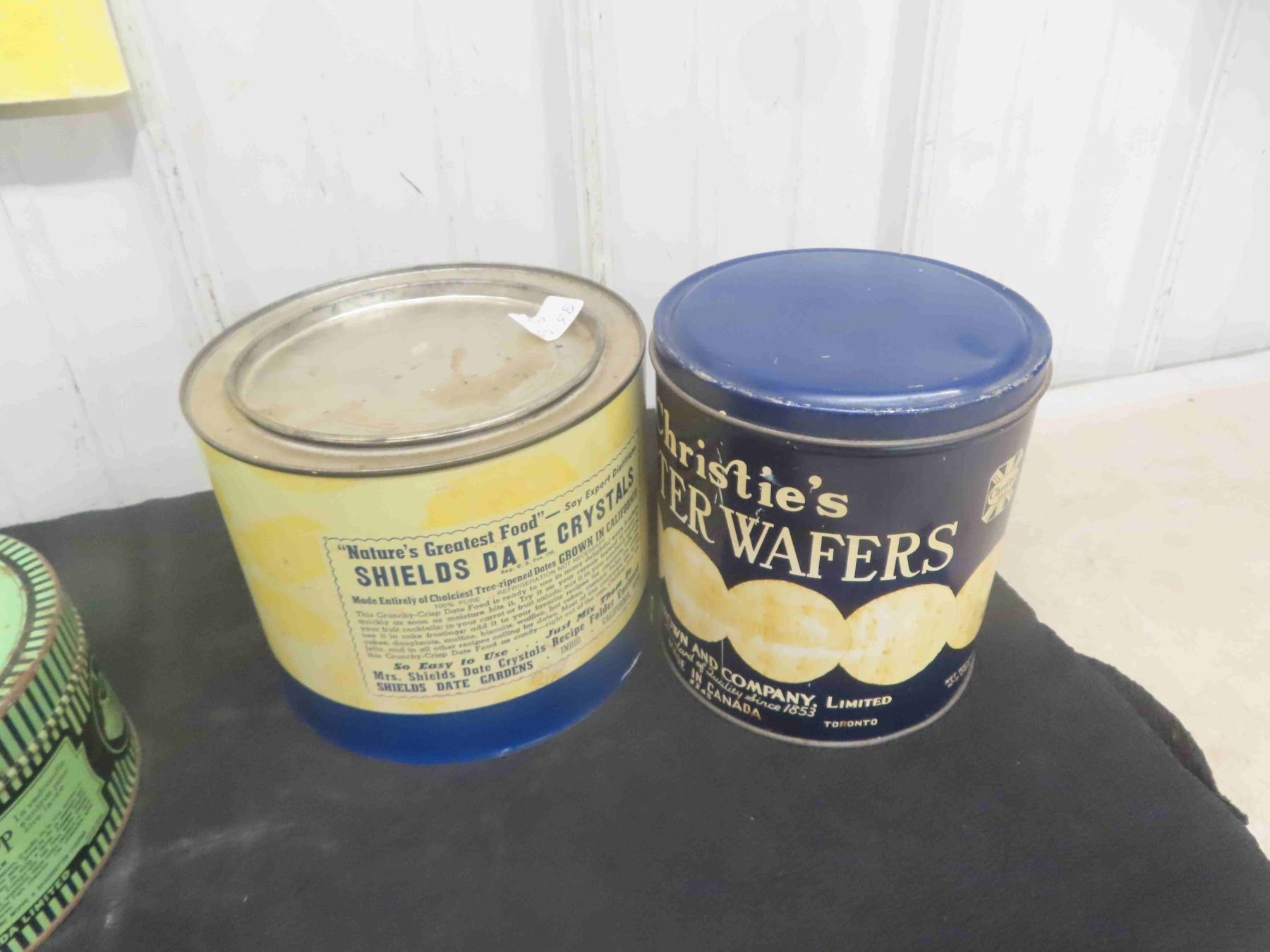 4 Tins ; O Cedar Mop Polish, Hawes Floor Wax, Christie Butter Wafer, Shield Date