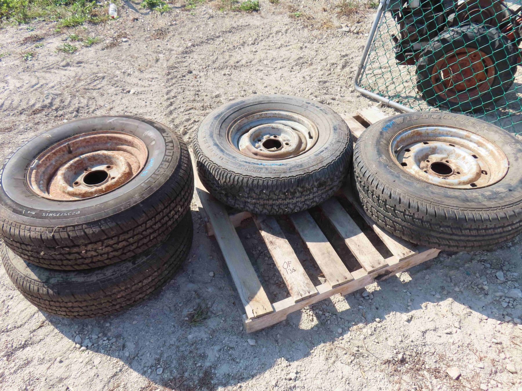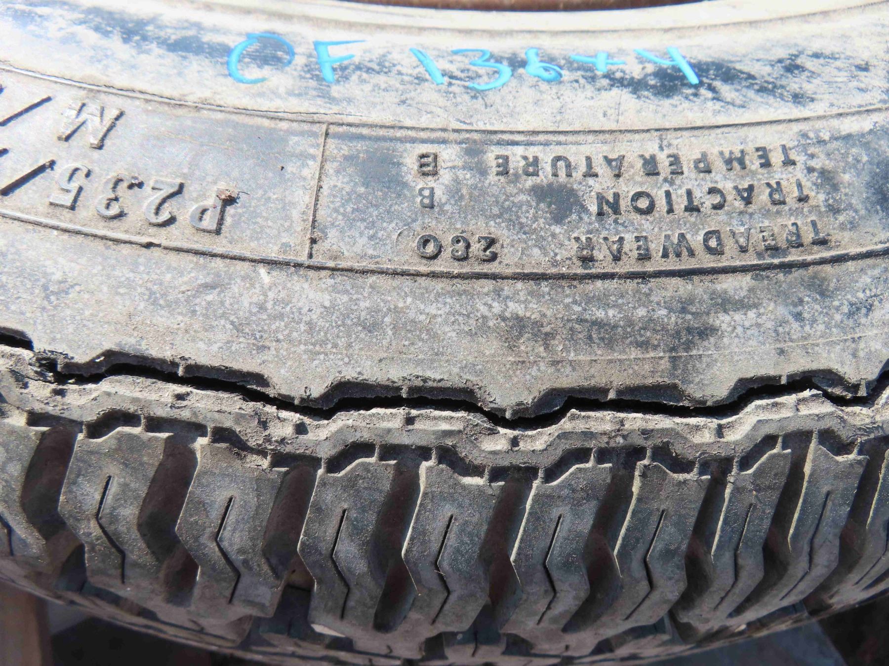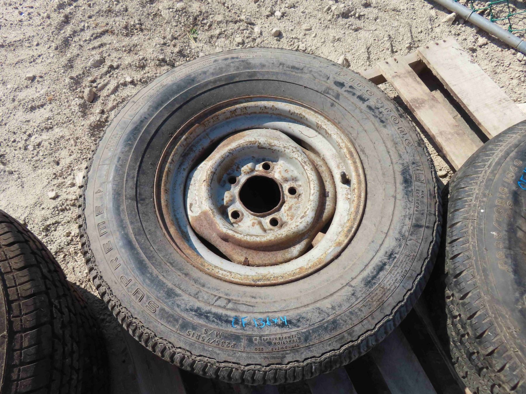4 Tires and Rims : 2 Vanderbilt All Season P 235/75R 15 on 5 Bolt Rims, 1 Firestone P235/ 75/ R15 on 5 Bolt Rim, 1 Firestone P 235/70/ R16 on 5 Bolt Rim
