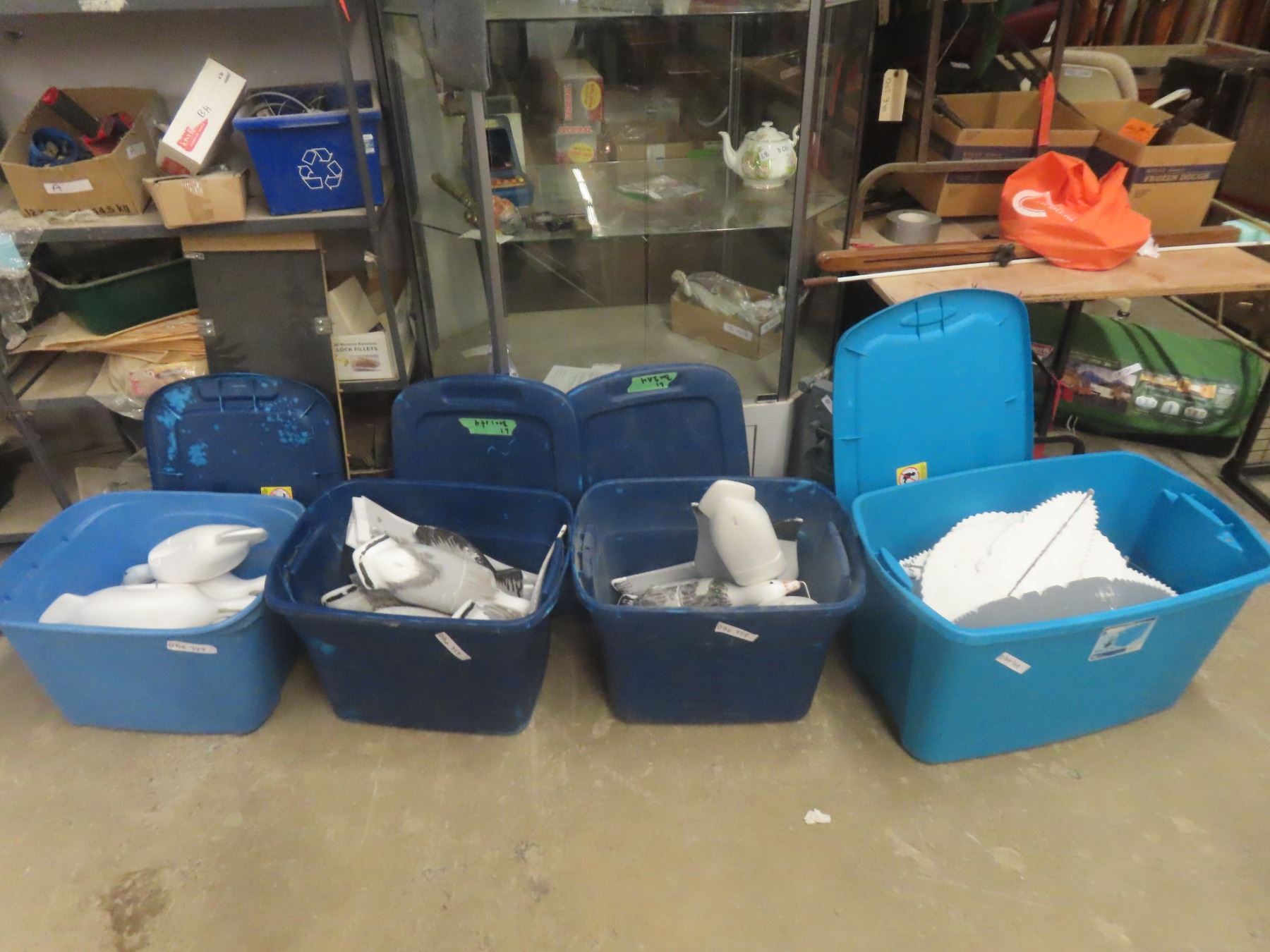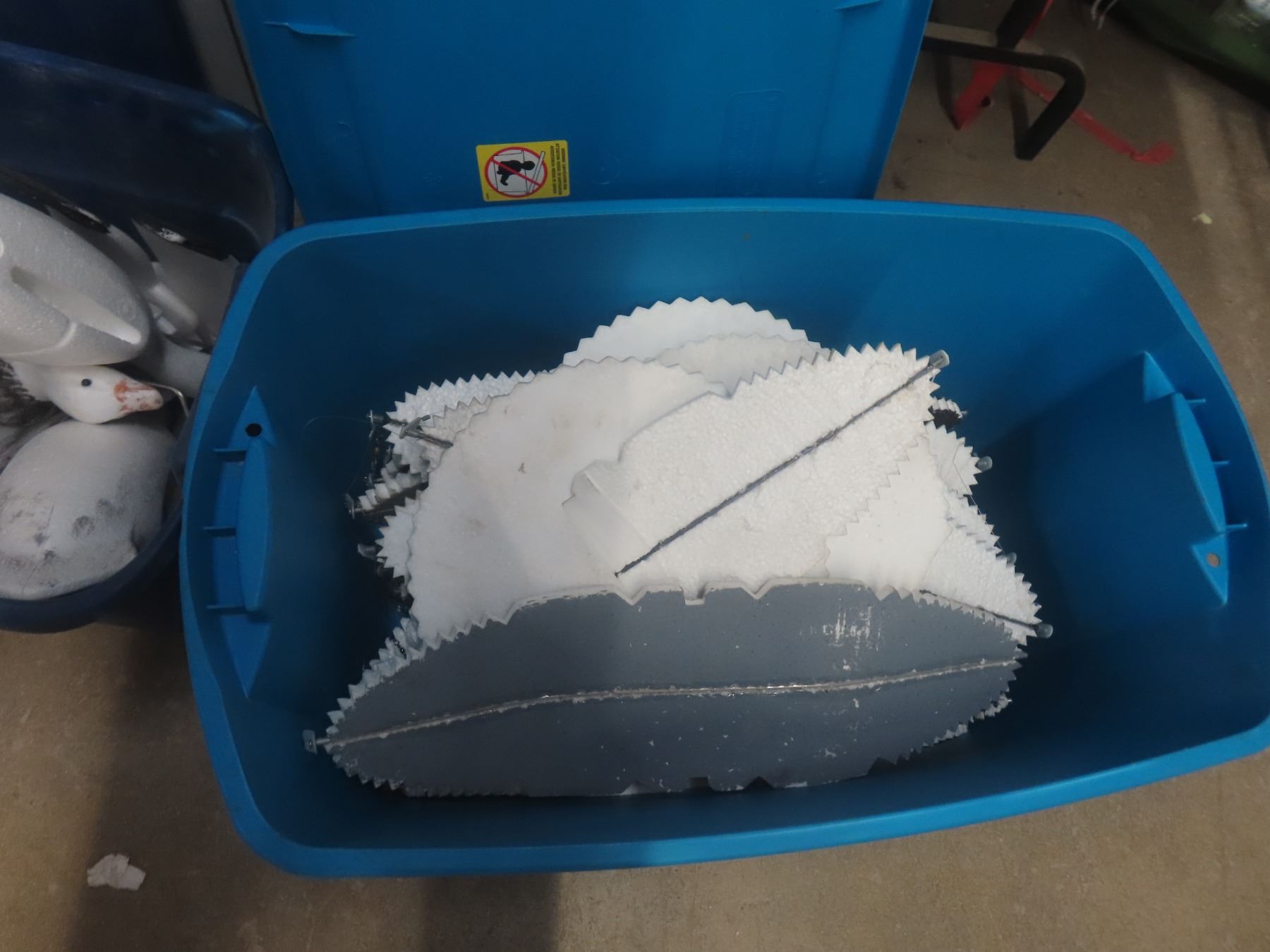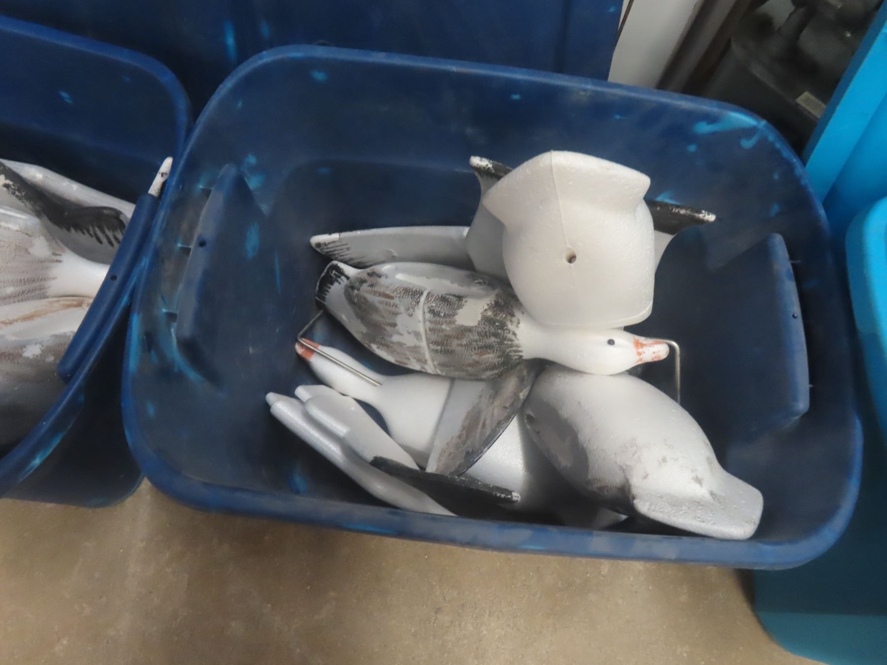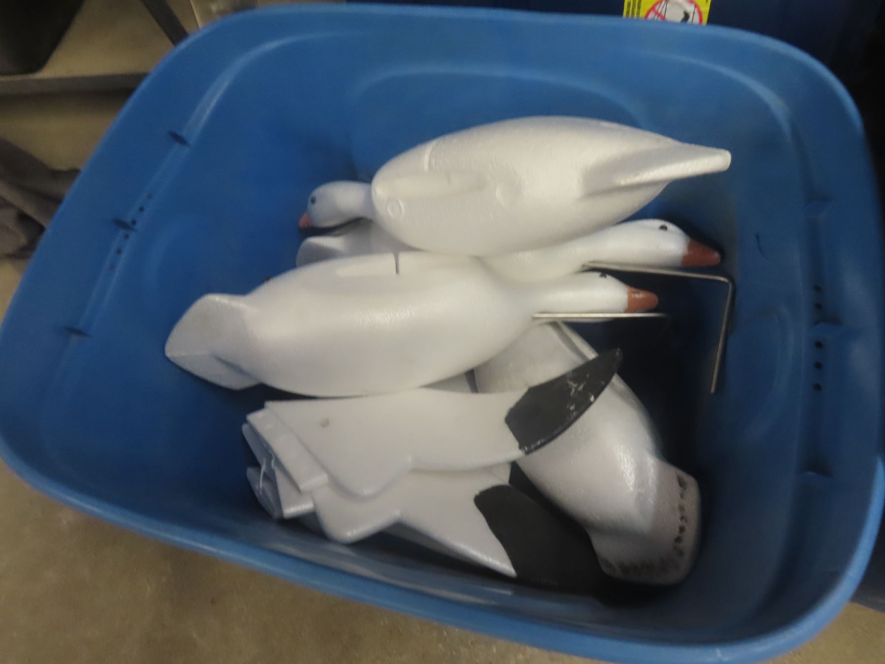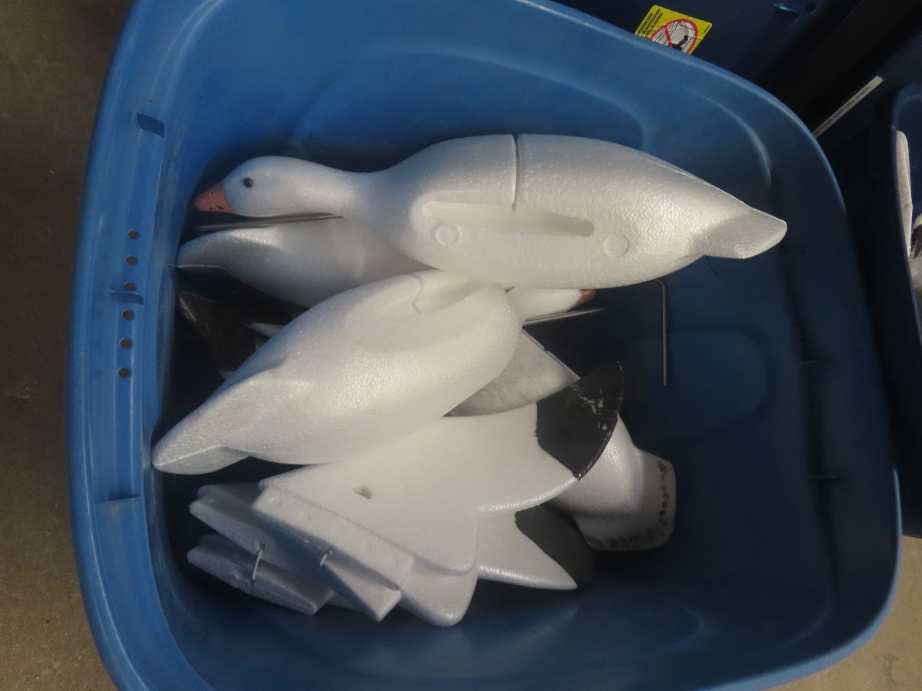 4 Tote Storage Bins with Styrofoam Geese Decoys