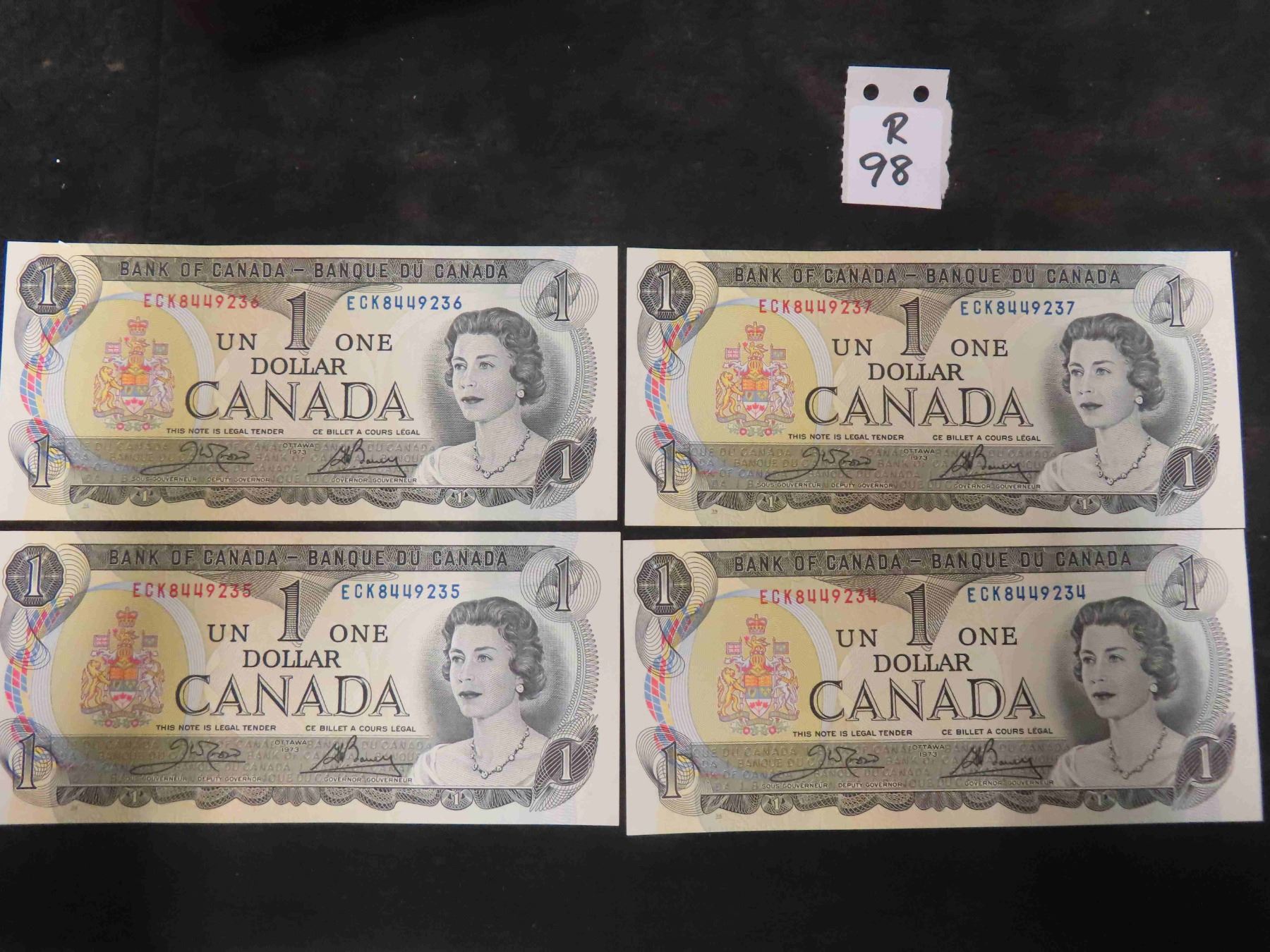 4 Uncirculated Bank Of Canada 1973 Dollar Consective Numbers