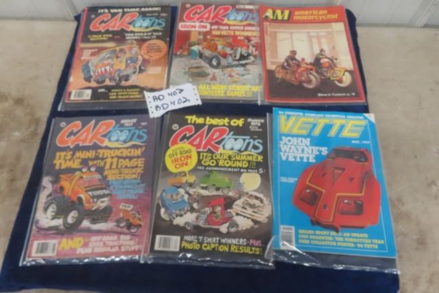 4 Vintage 1970's Car Magazines (cartoon) Also Vette Mag. + Motorcycle Magazine