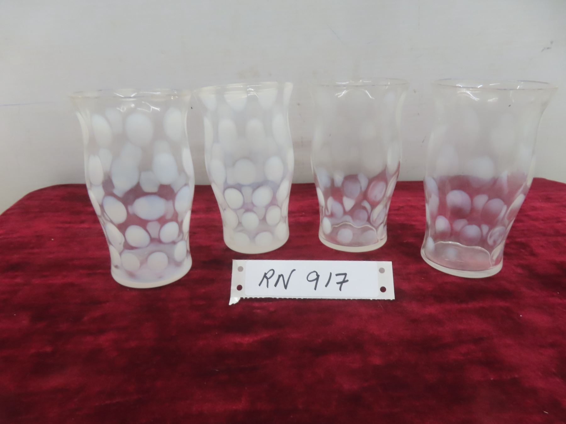 4 Vintage Fenton White Opalescent Coin Dot Glass Tumblers