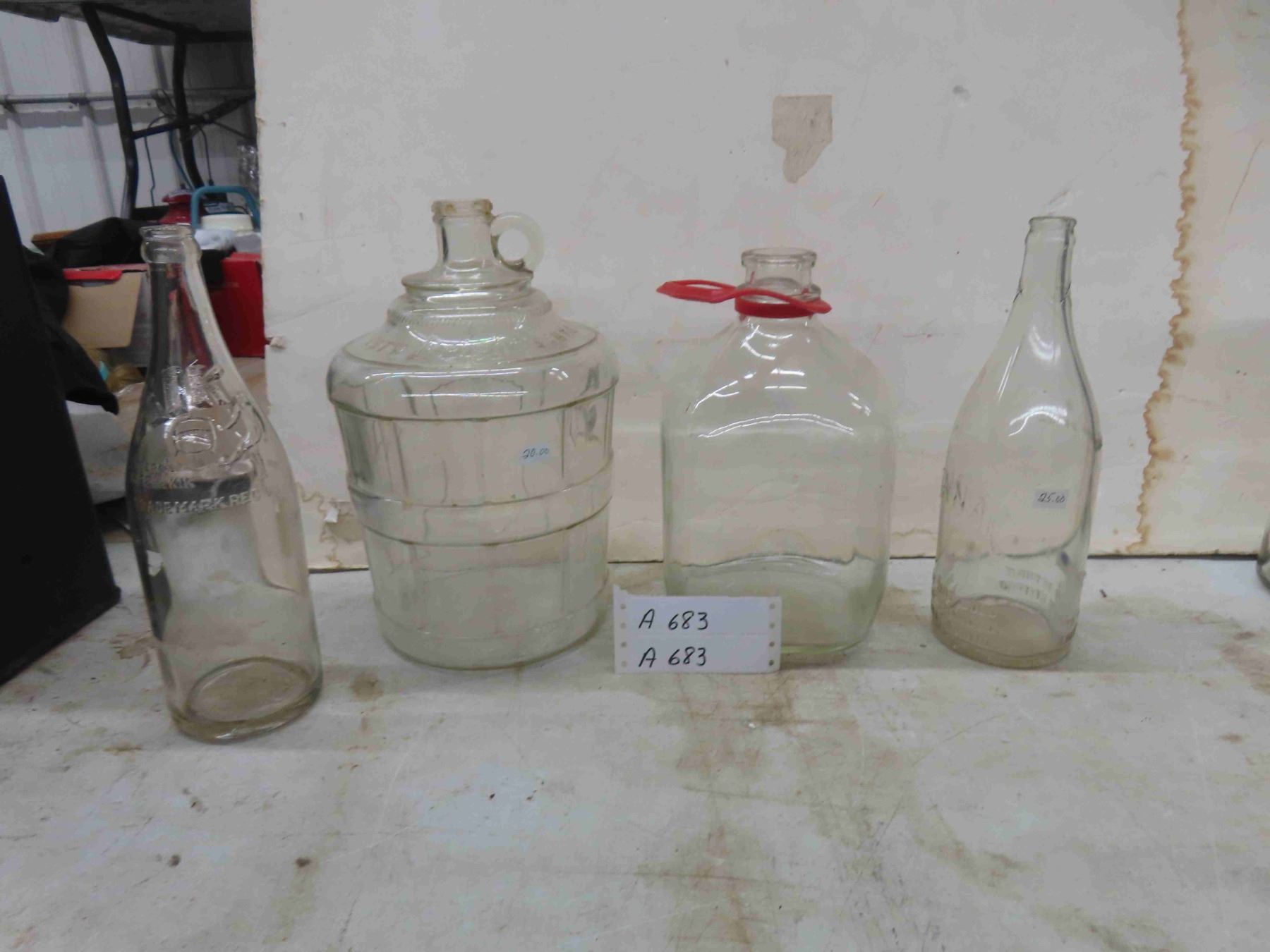 (4) Vintage Glass Bottles ; 4 L Milk, Kik, Brihts, Adanac
