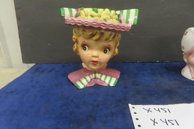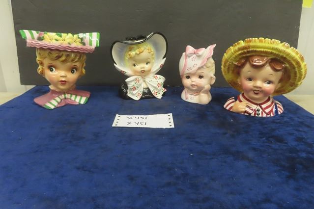4 Vintage Head Vases - Good Colors-Clean