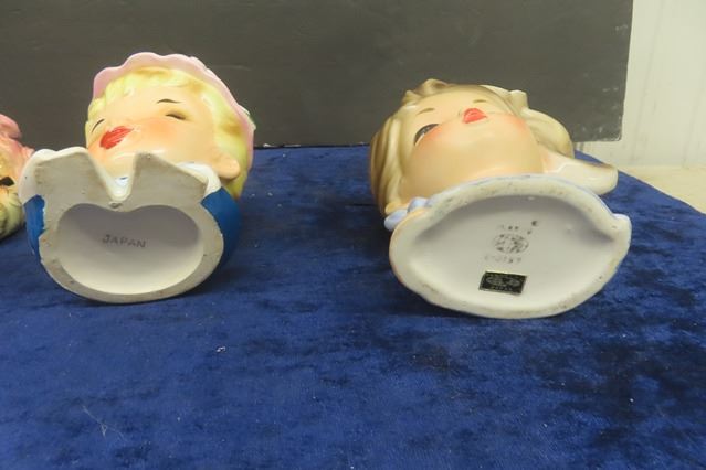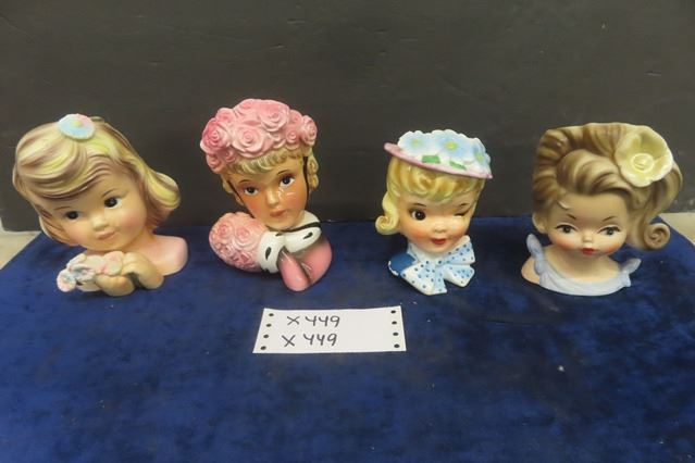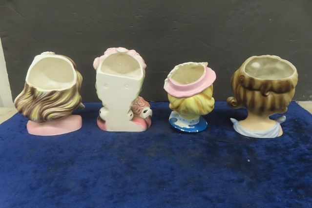 4 Vintage Head Vases - Great Detail + Color