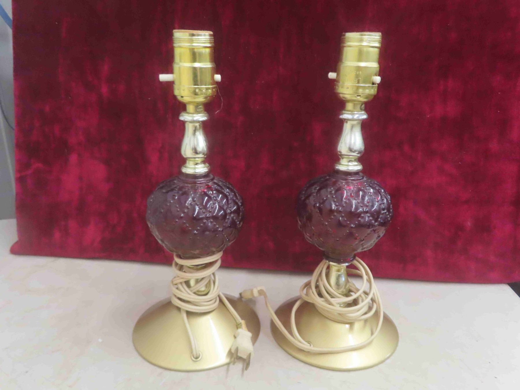 4 Vintage Lamps with Shades 11'' Tall without Shade , Shade Measures 10''