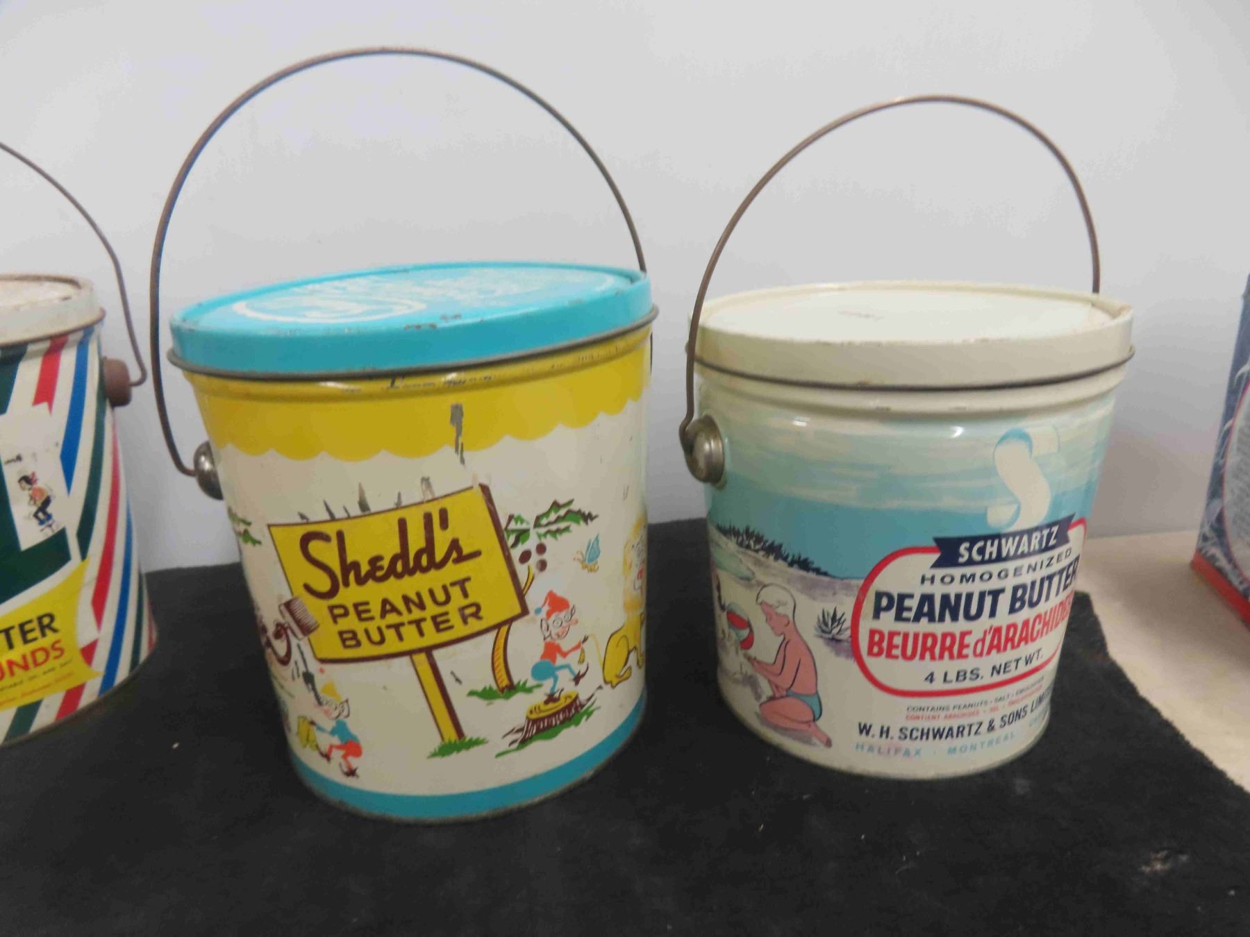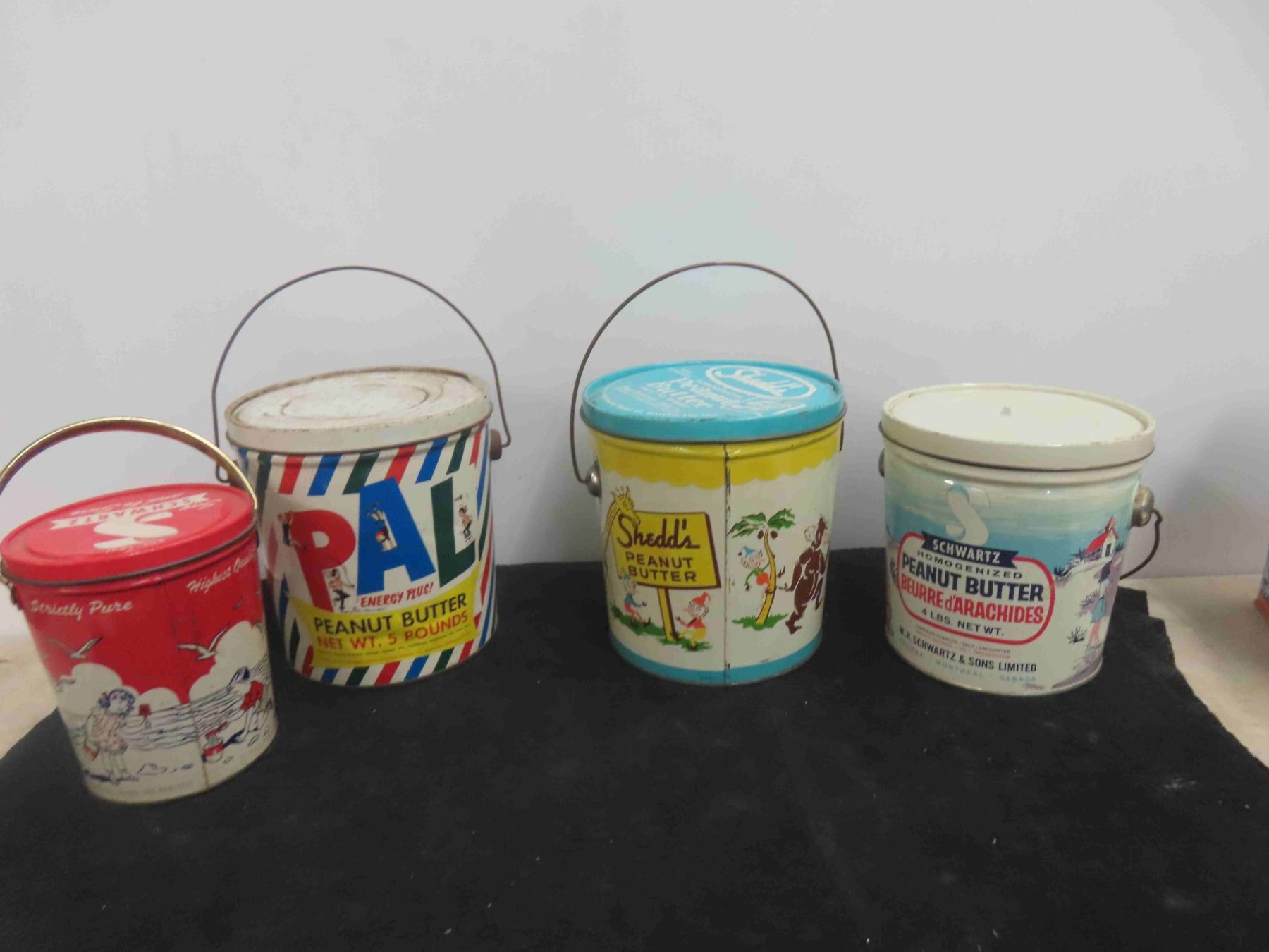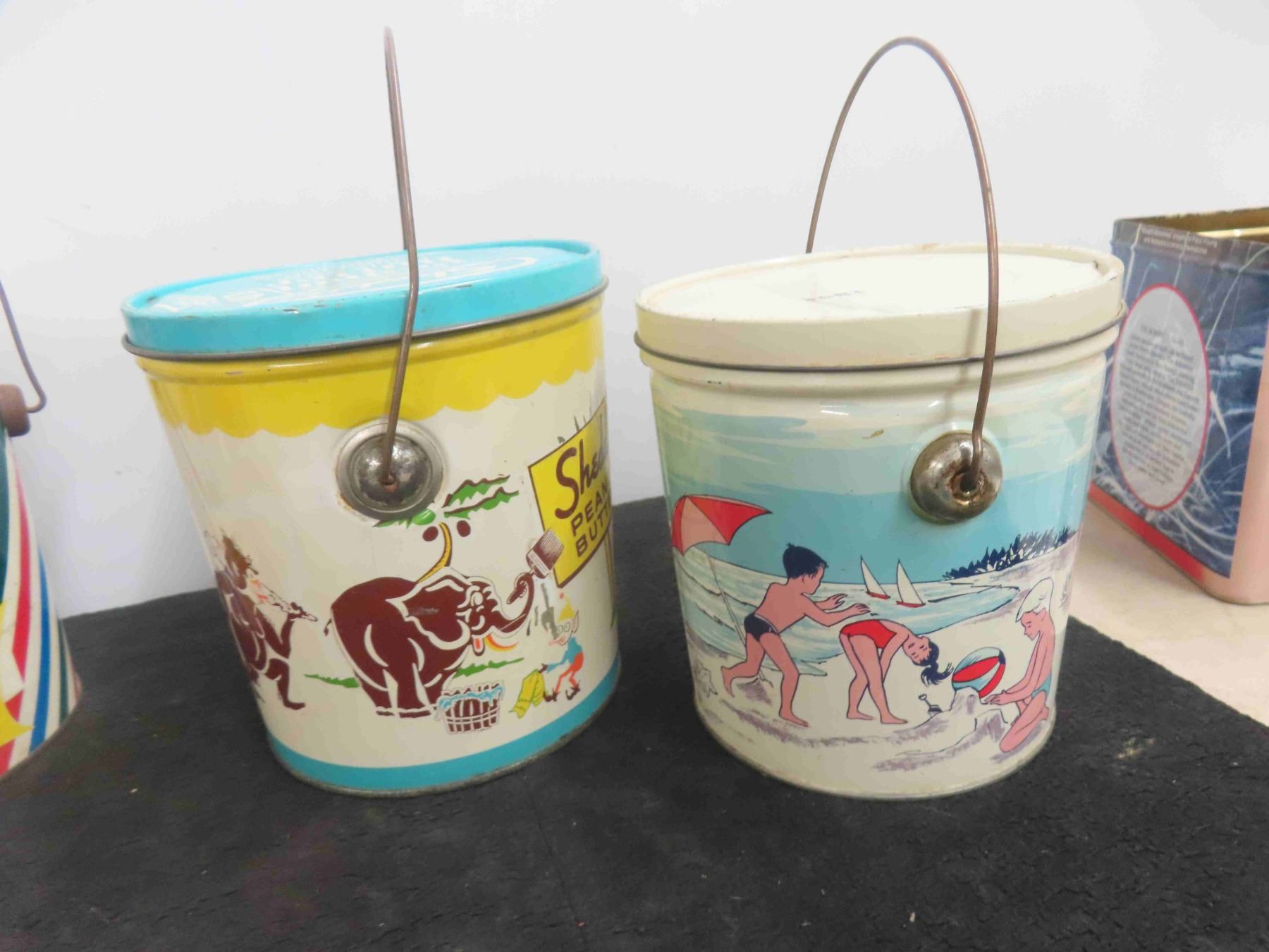 4 Vintage Peanut Butter Tins Made to Be Used As Kids Beach Sand Pails After Peanut Butter is Gone - All Very Good Condition