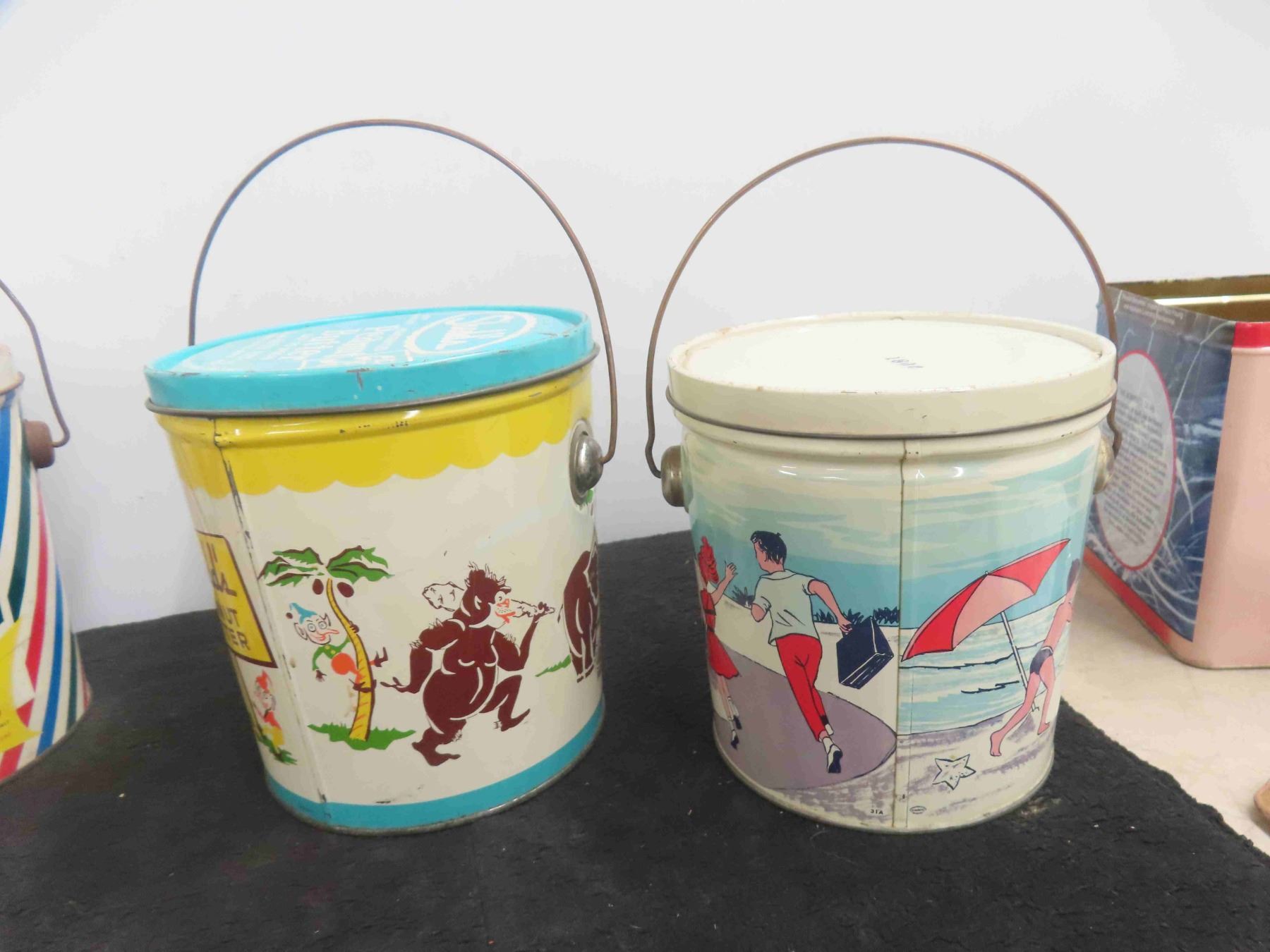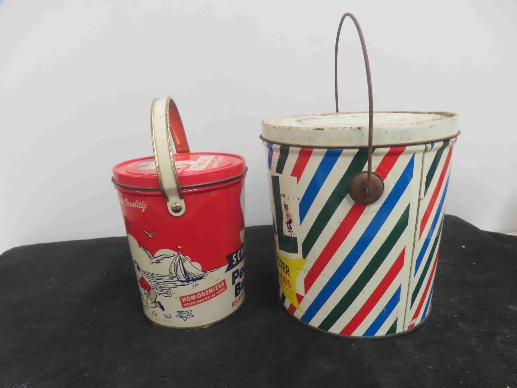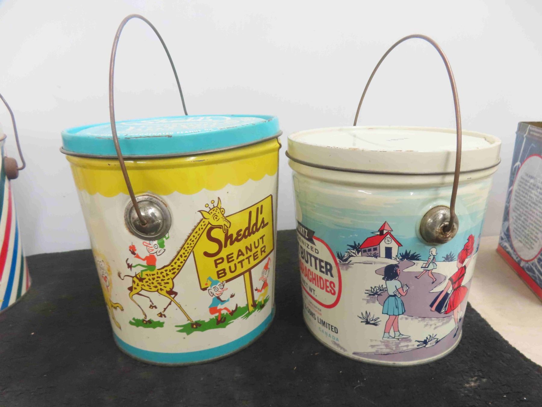 4 Vintage Peanut Butter Tins Made to Be Used As Kids Beach Sand Pails After Peanut Butter is Gone - All Very Good Condition