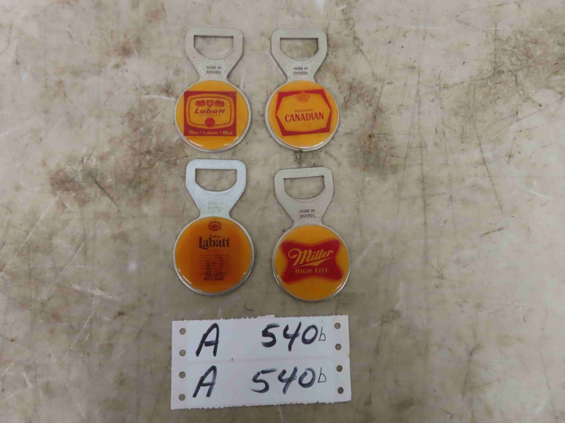 4 Vintage Rare Beer Bottle Openers ; Labatts, Canadian, Miller