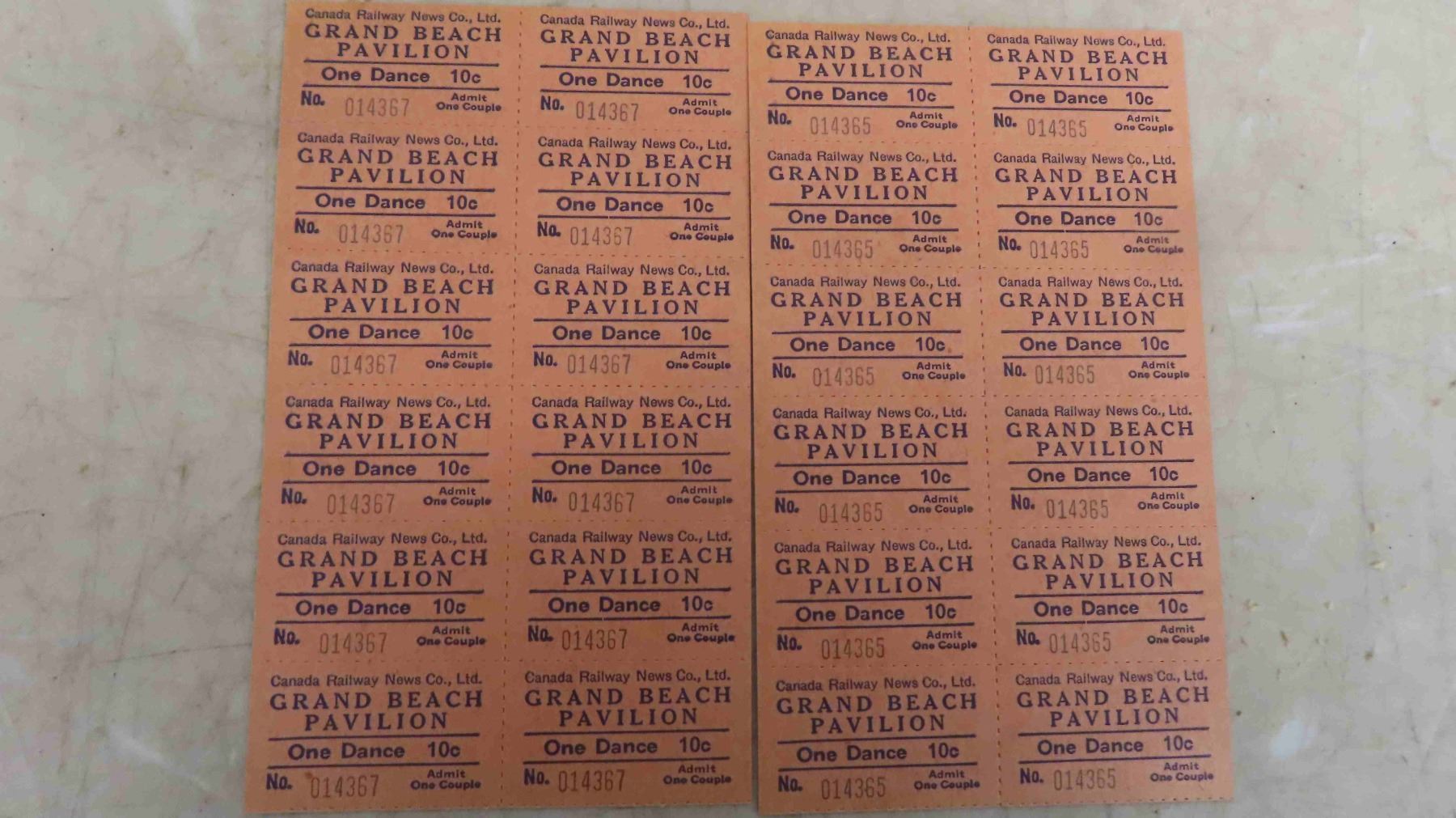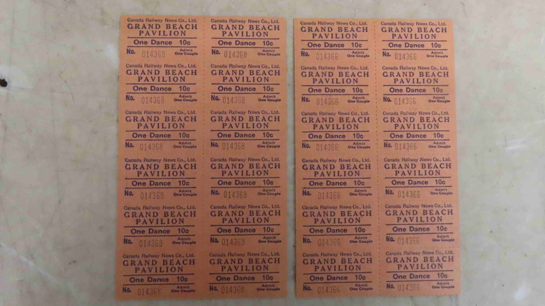 4 Vintage Sheets with 12 Tickets Per Sheet for 10 Cents a Dance At The Grand Beach Pavilion