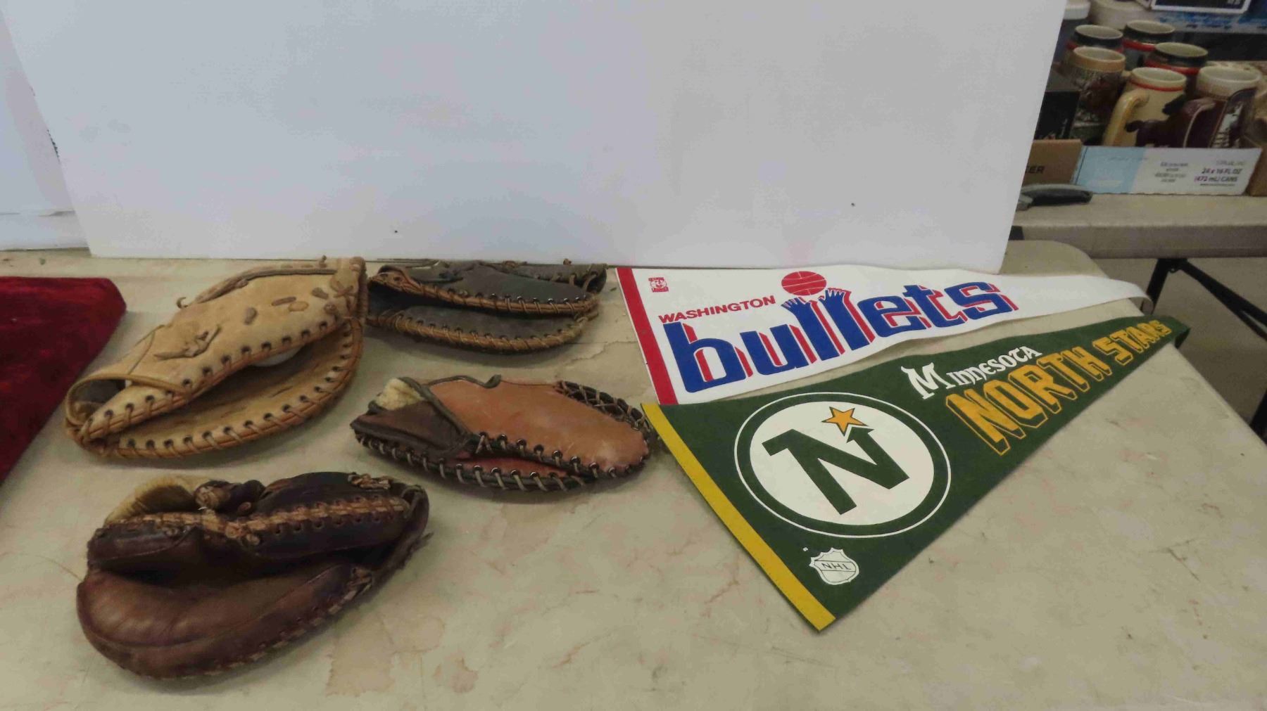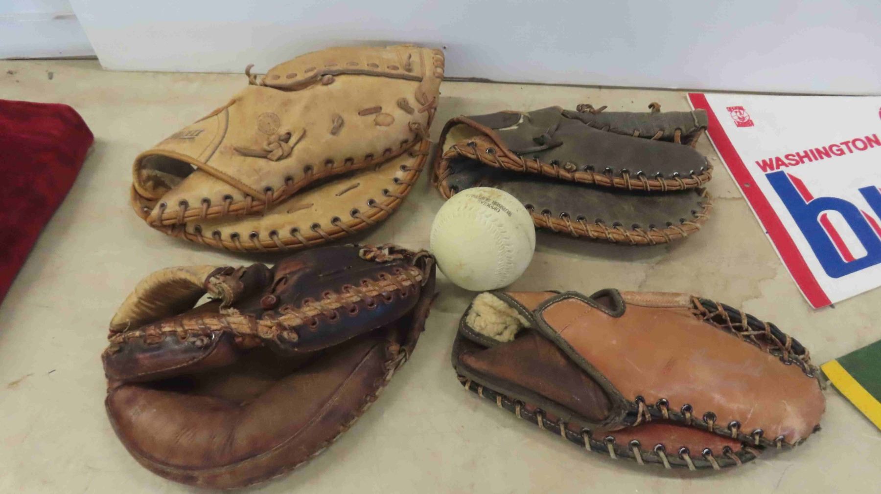 4 Vintage Trapper Gloves, Soft Ball, 2 Pendants