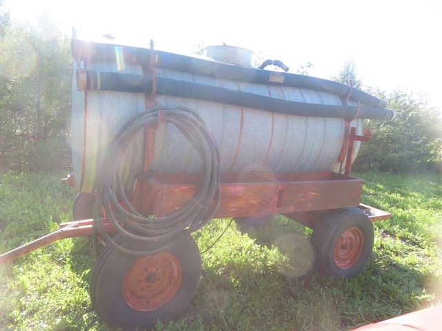 4 Wheel Water Tank Trailer with Suction & Discharge Hose, Approximately 750 Gal