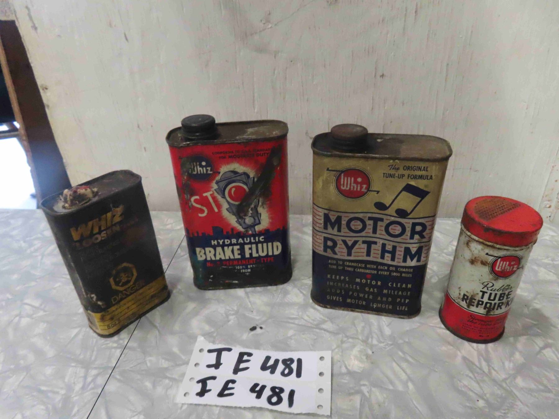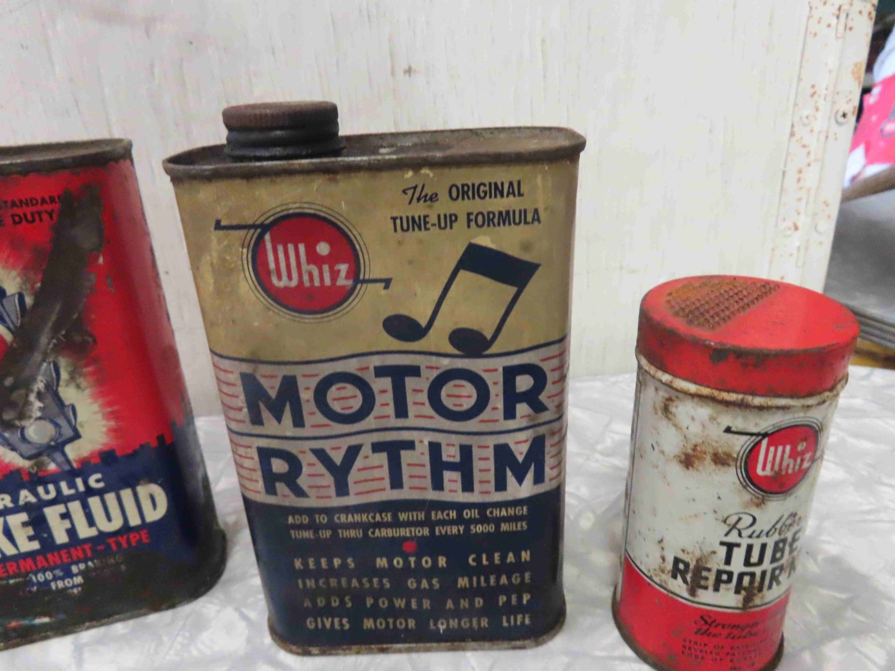 4 Whiz Tins : Motor Rhythm , Tube Repair , Brake Fluid , Loosen Oil