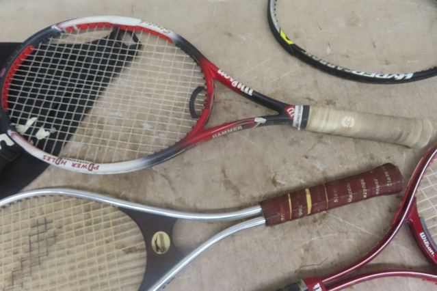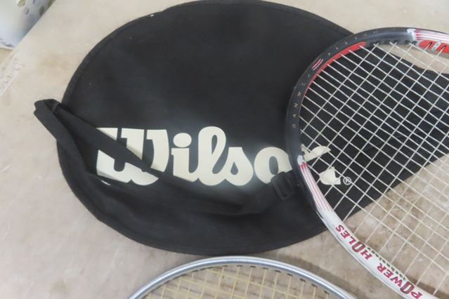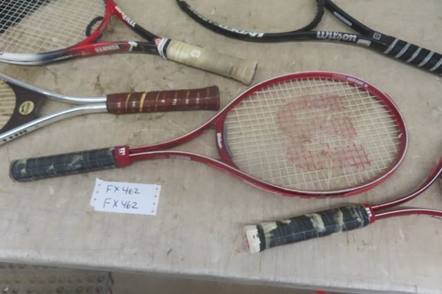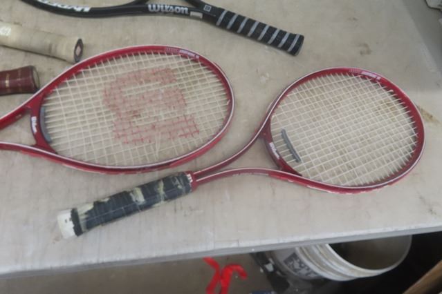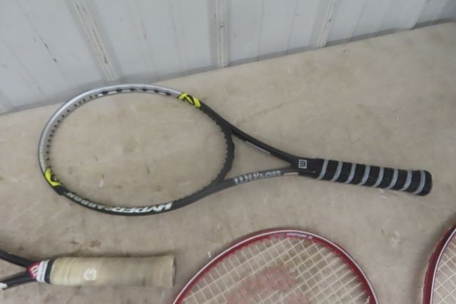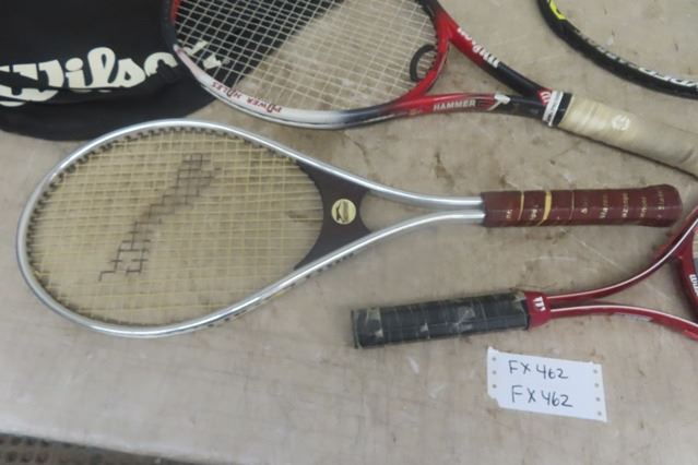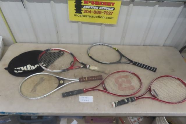 4 Wilson Tennis Raquets, 1 Slazenger, 1 Wilson is Stringless