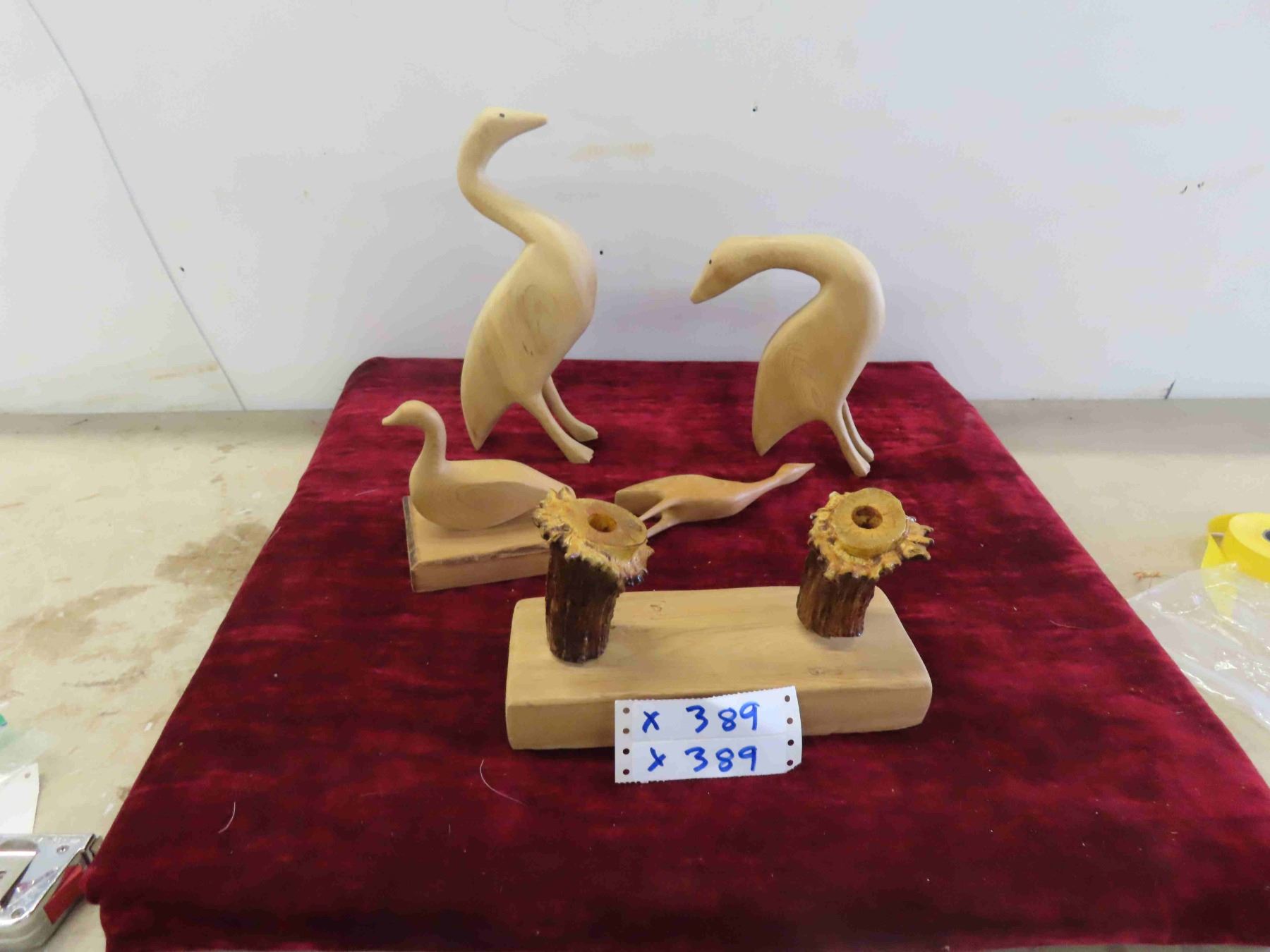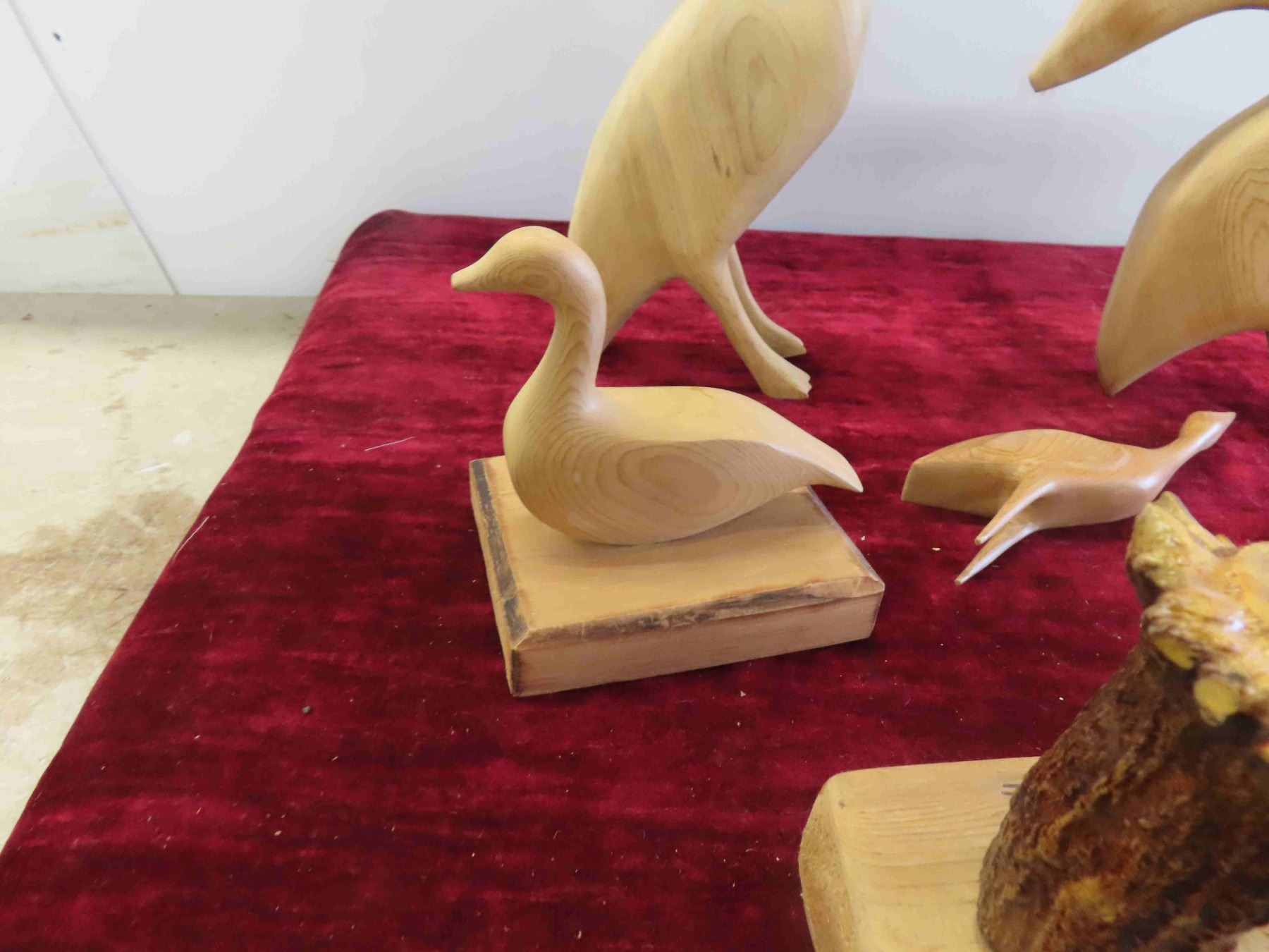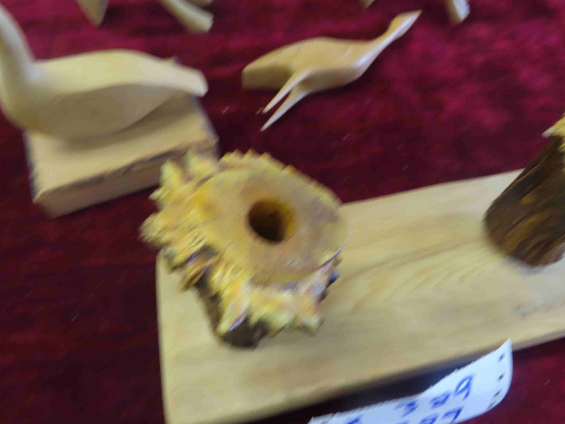 4 Wood Carved Birds Largest is 12'' , Cabin Candle Holder