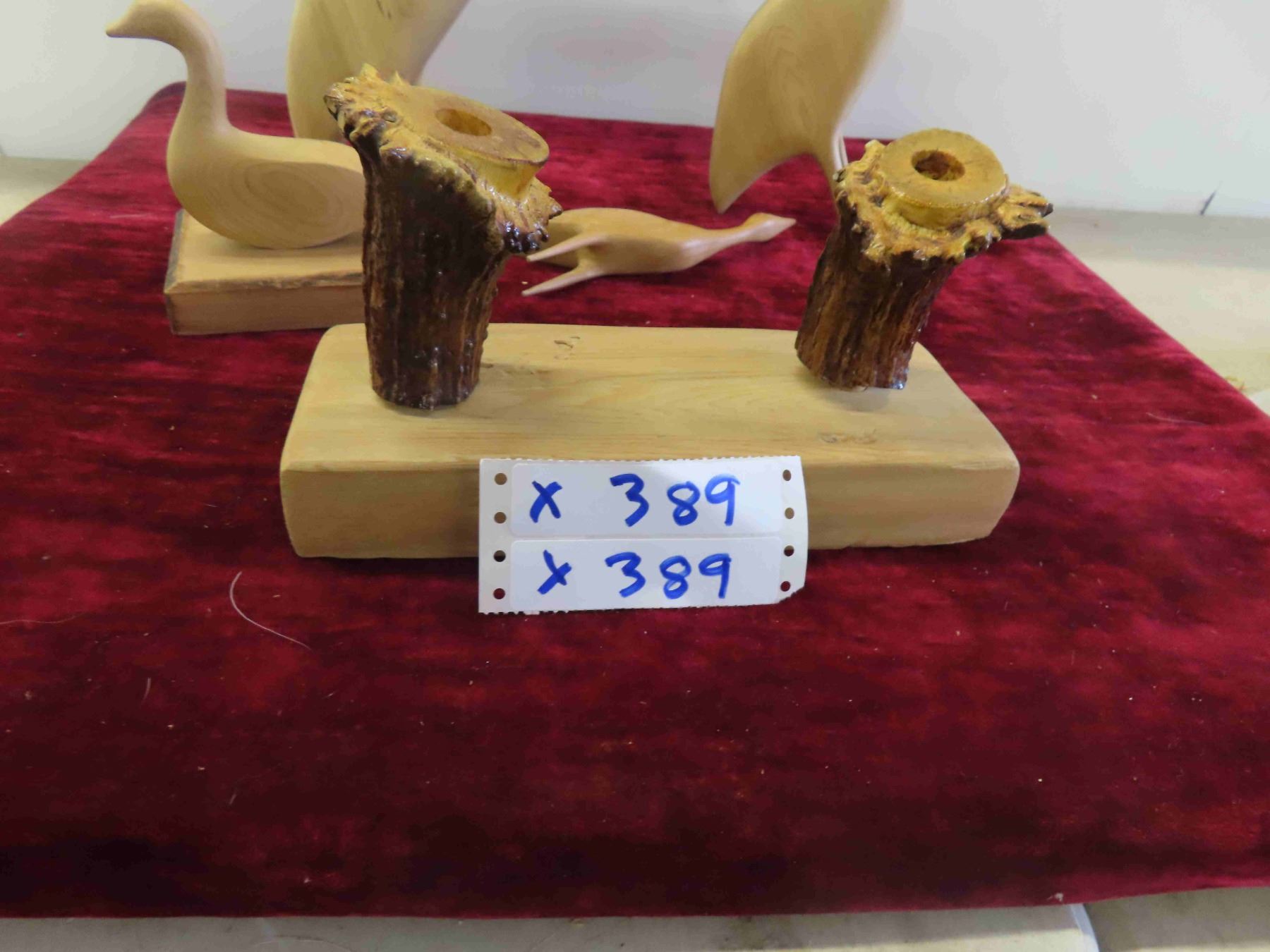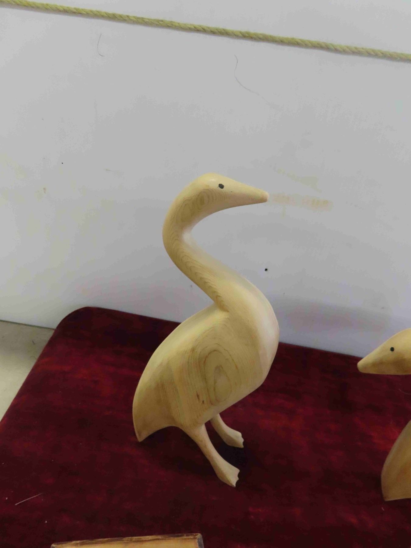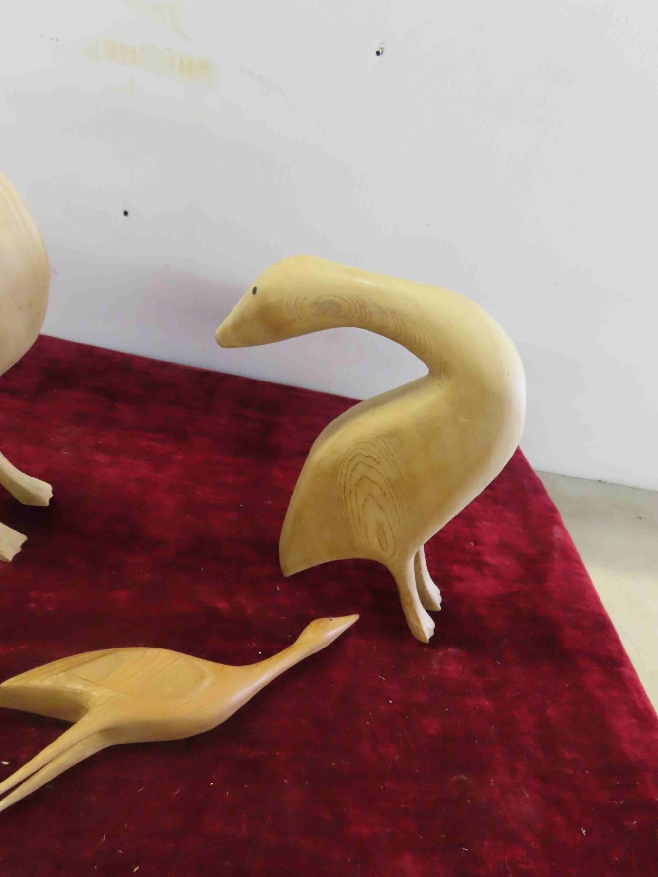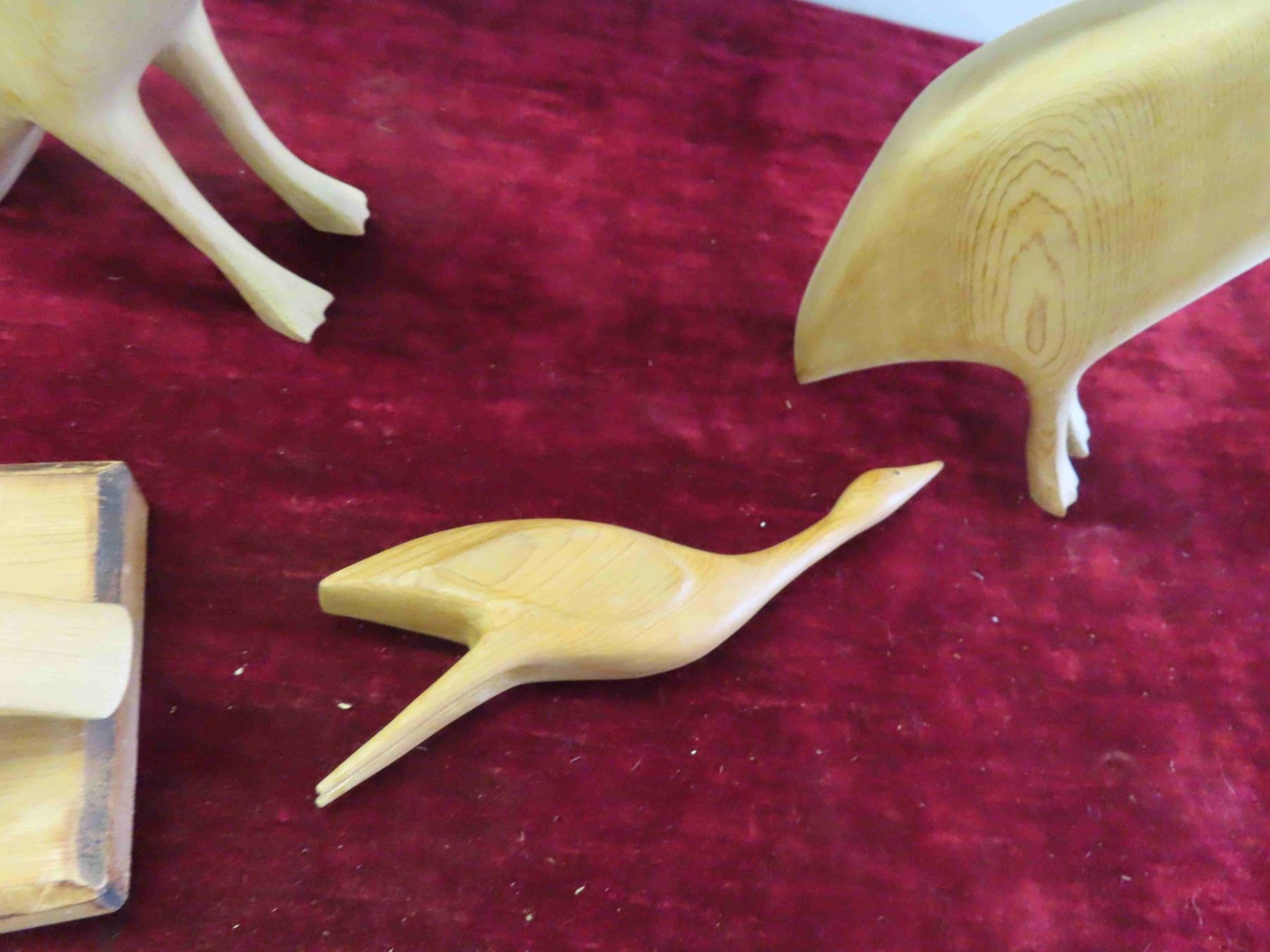 4 Wood Carved Birds Largest is 12'' , Cabin Candle Holder