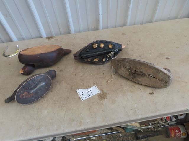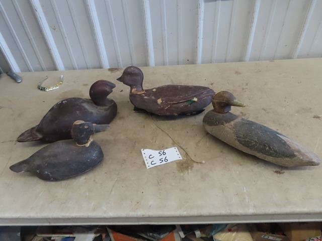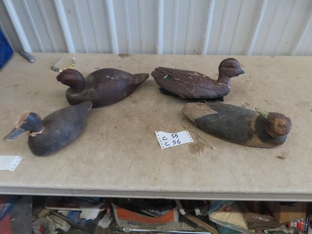 4 Wood Carved Duck Decoys- Rough Condition