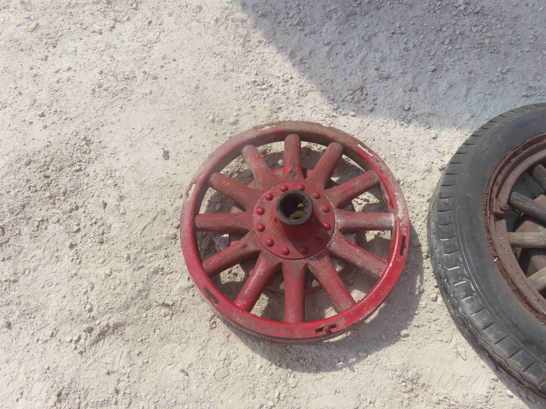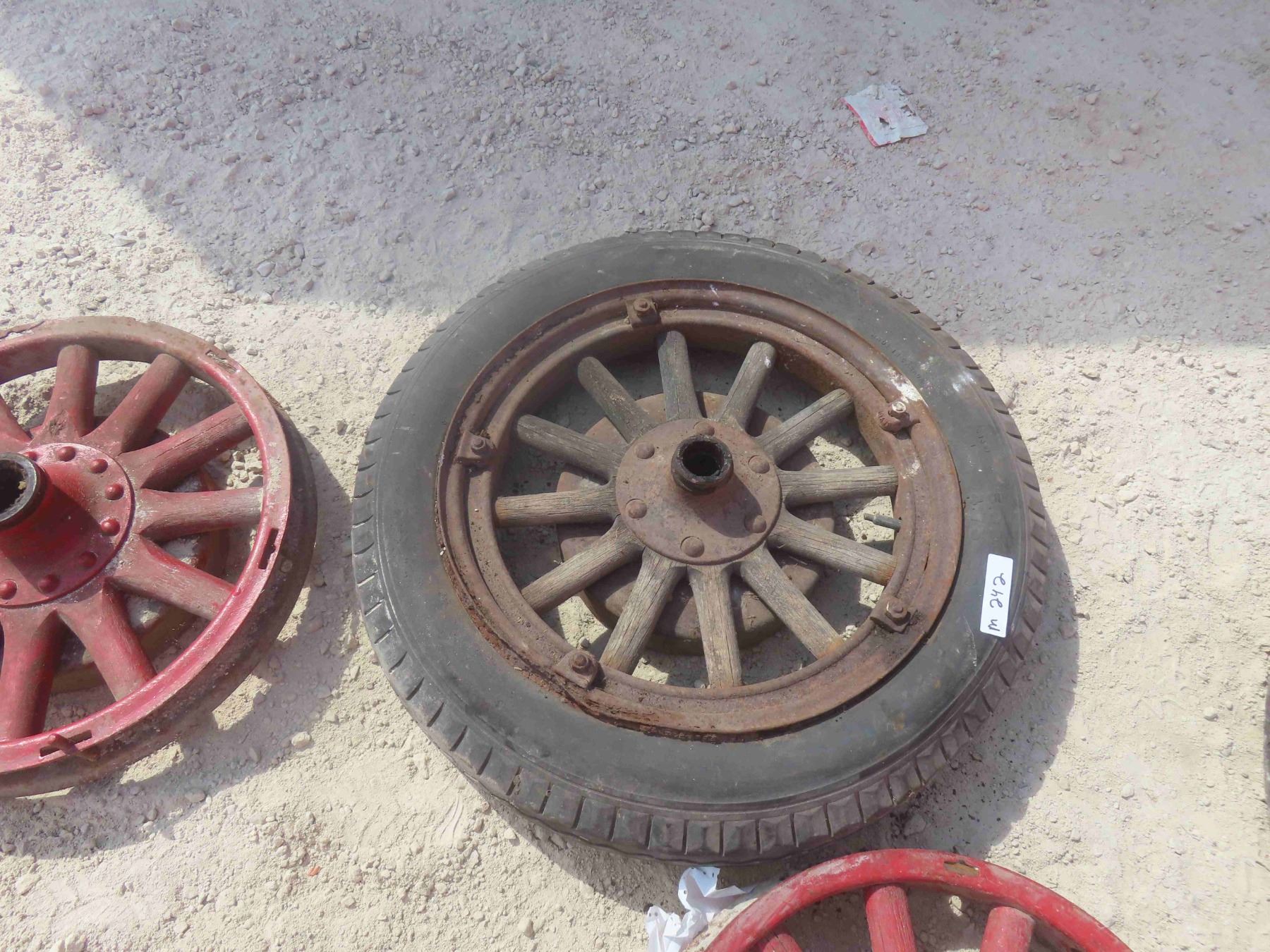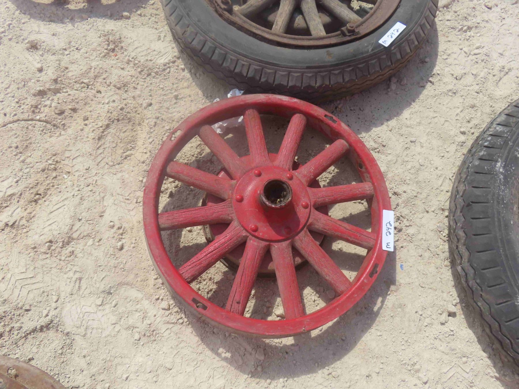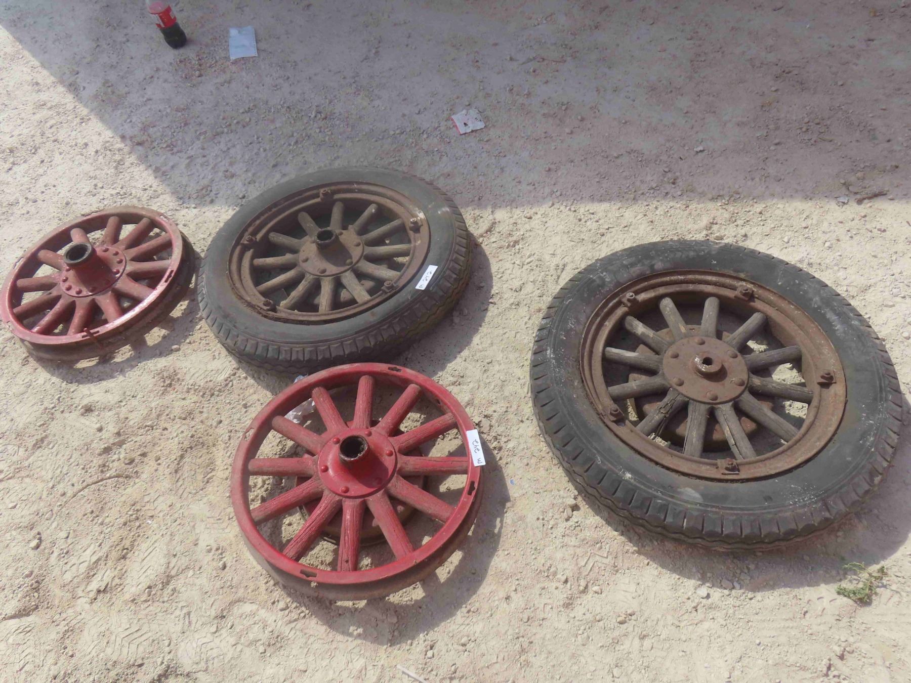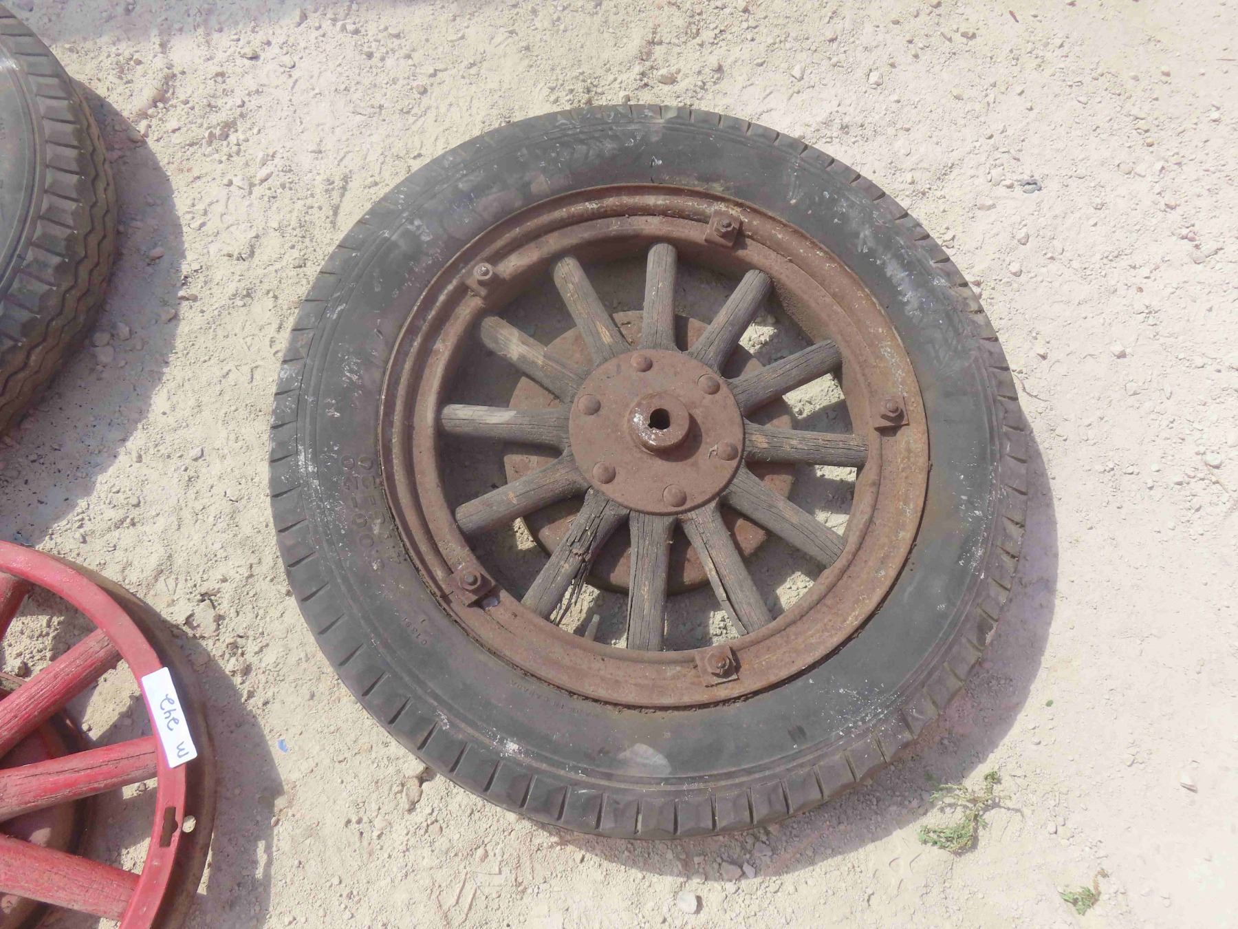 4 Wood Spoked Auto Rims, (2) with Rubber