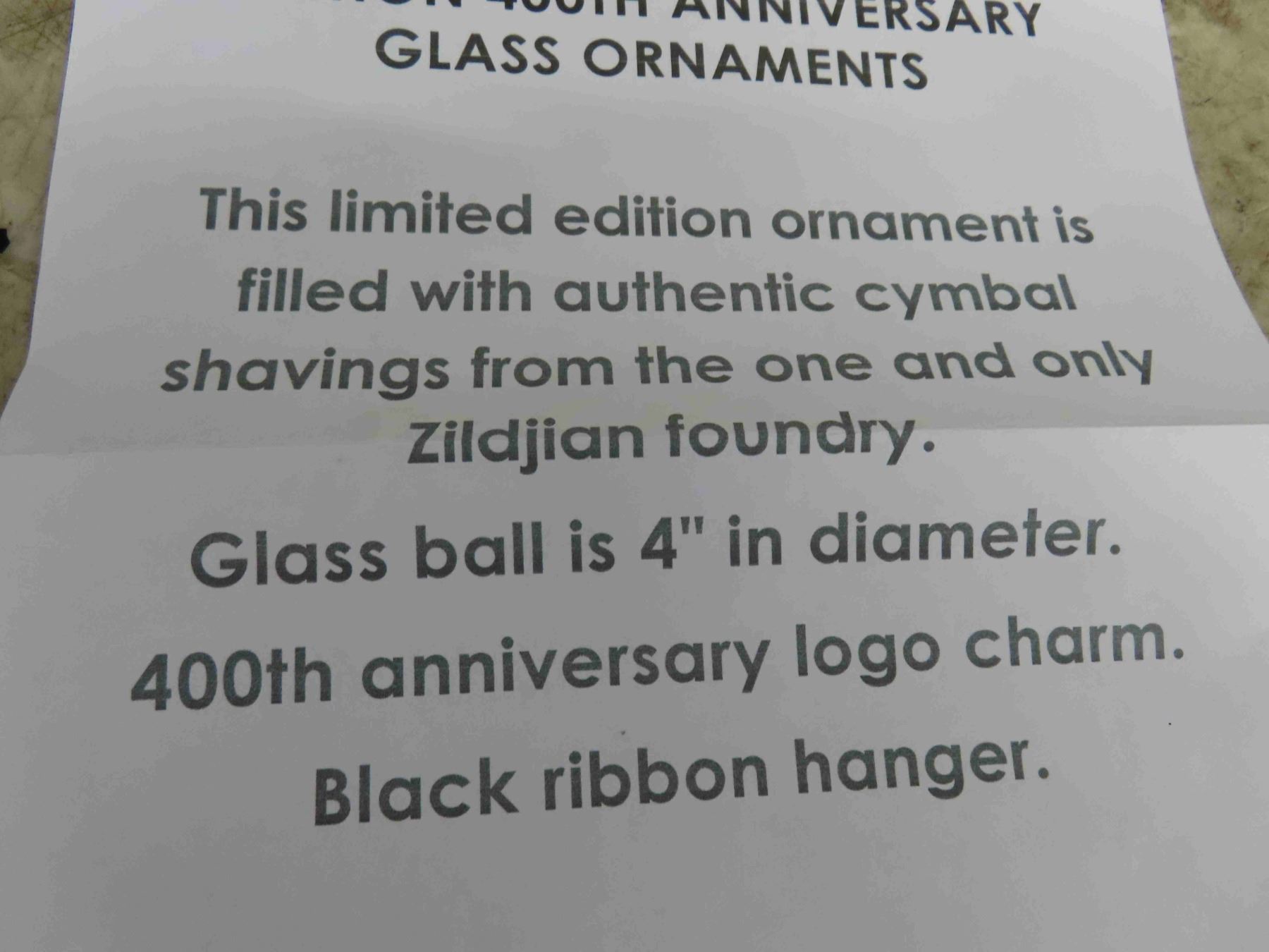 (4) Zildjian Limited Edition 400th Anniversary Glass Ornaments. More Details in Photos.