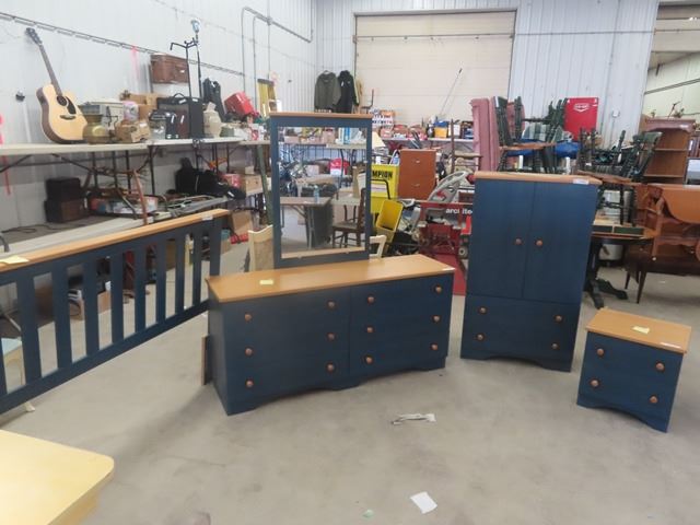 4 pc Bedroon Suite; Dresser 61" x 17" x 29" + Mirror 38" x 27" , Dresser 52" x 31" X 17" , Night Table 20" x 17" x 20" , Headboard 60" Wide