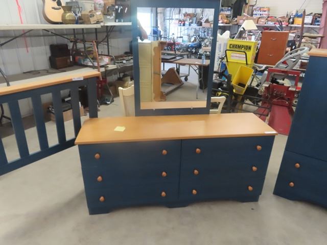 4 pc Bedroon Suite; Dresser 61" x 17" x 29" + Mirror 38" x 27" , Dresser 52" x 31" X 17" , Night Tab