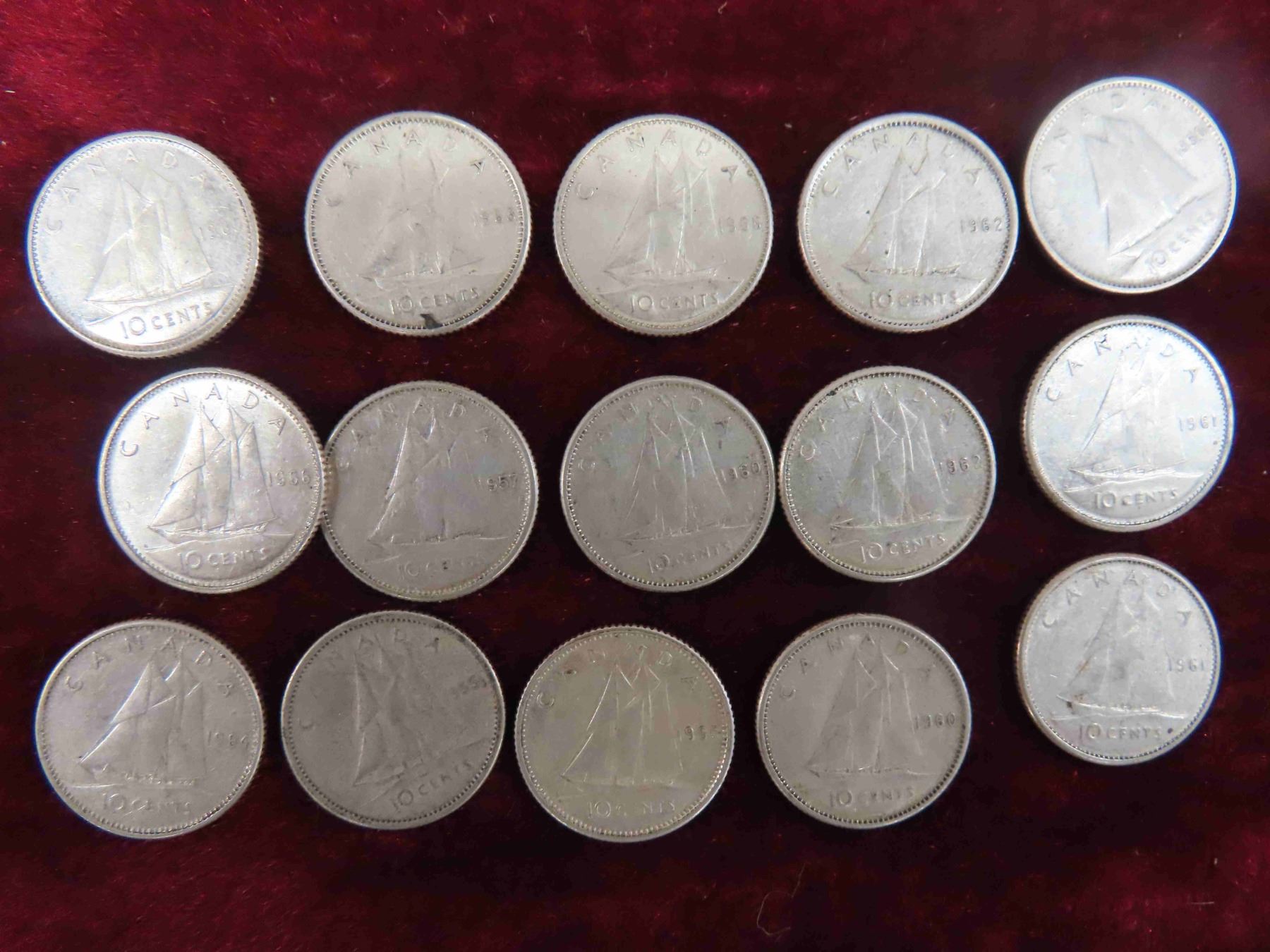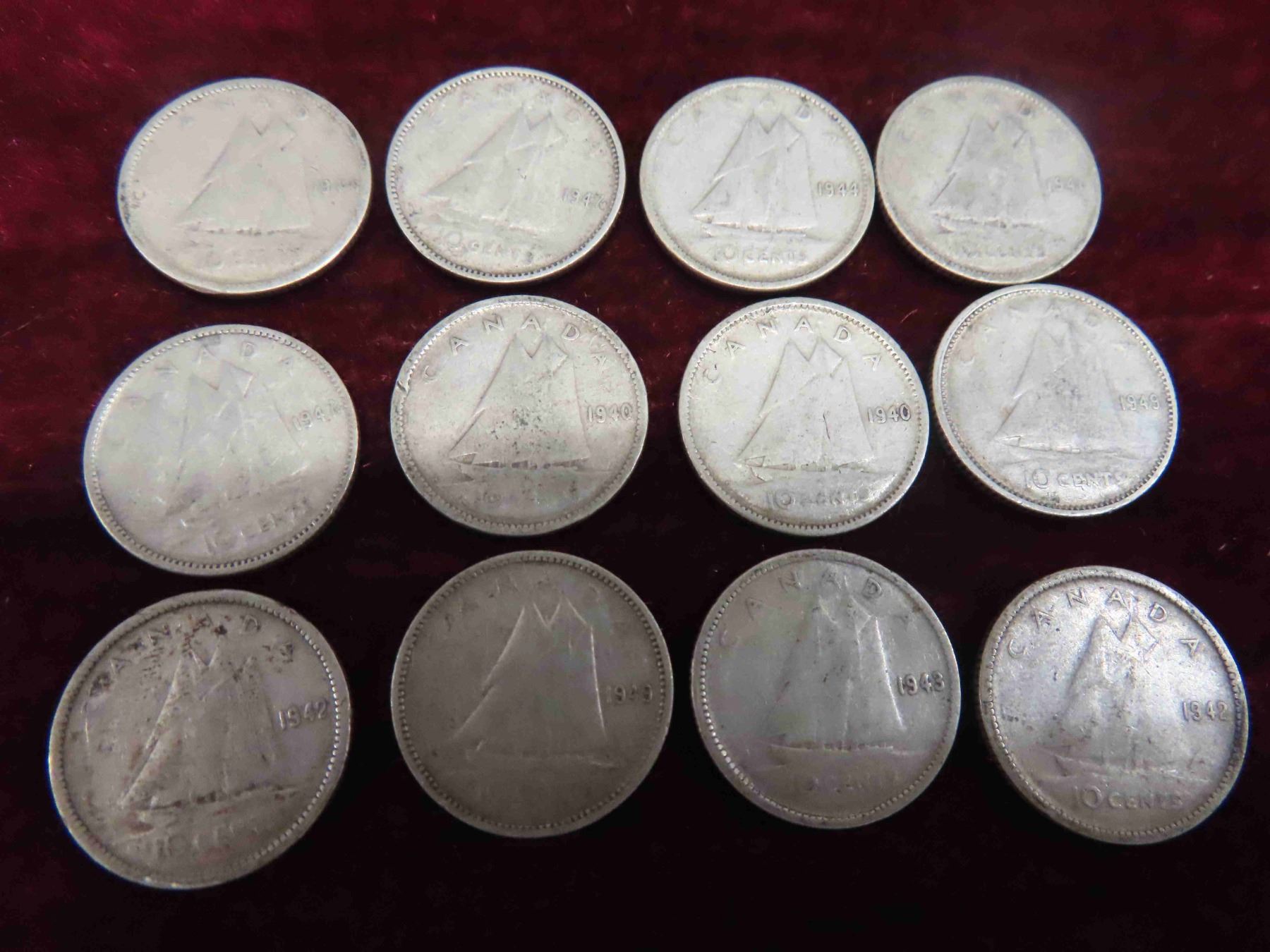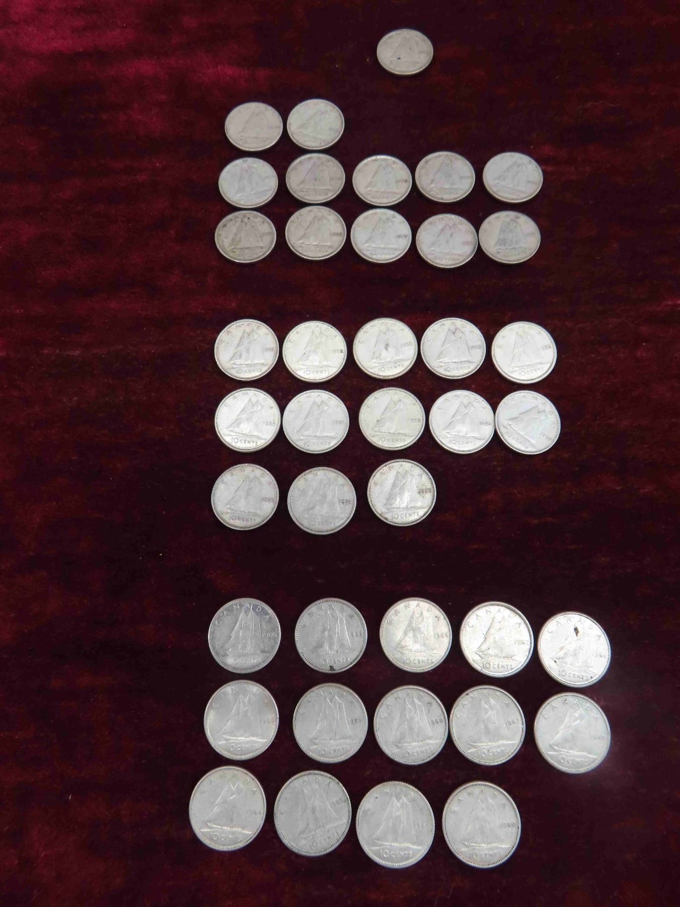 (40) Canadian Dimes 1930s-1960s