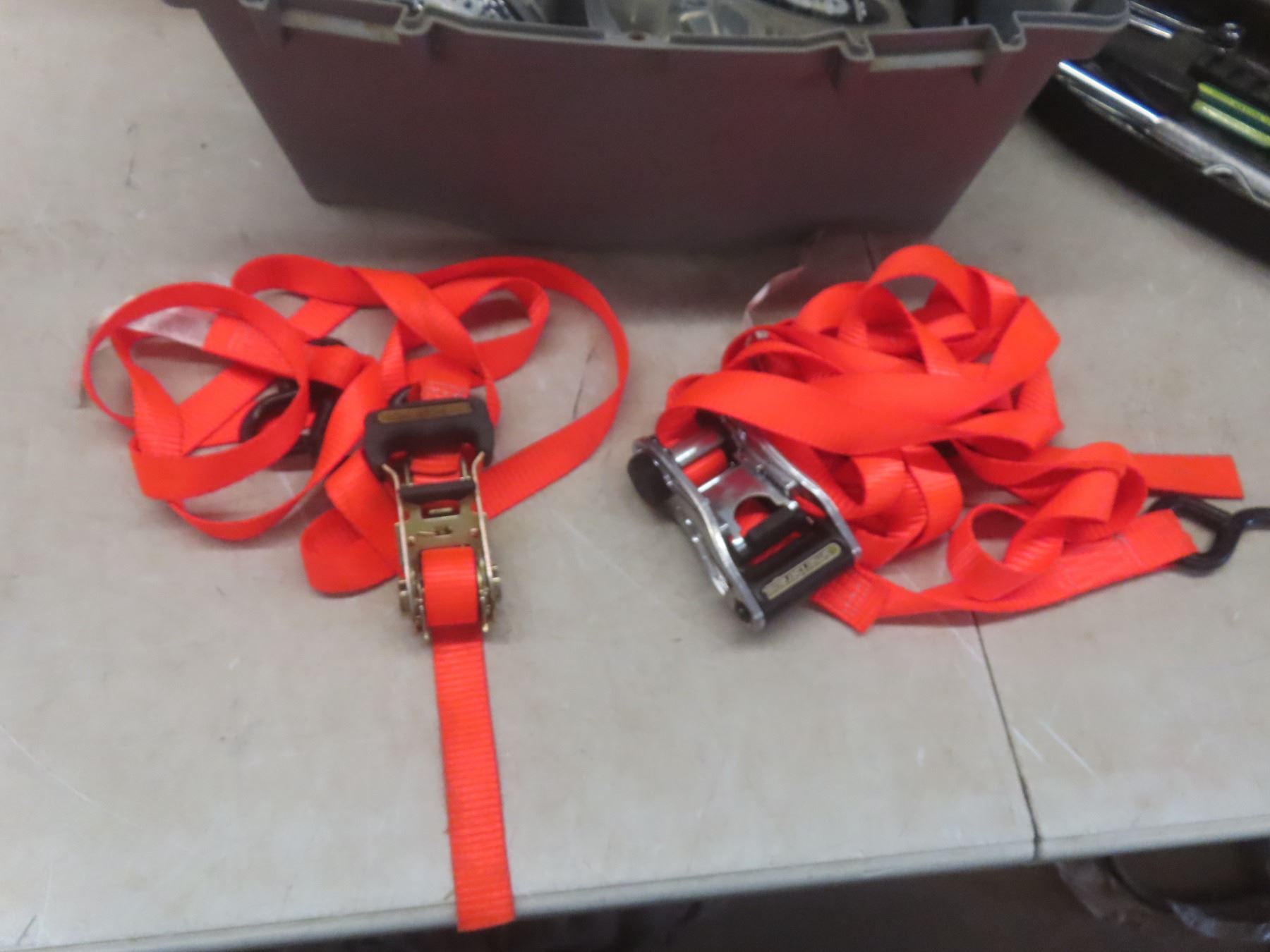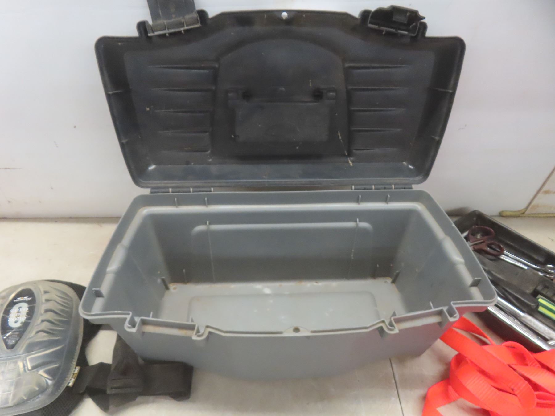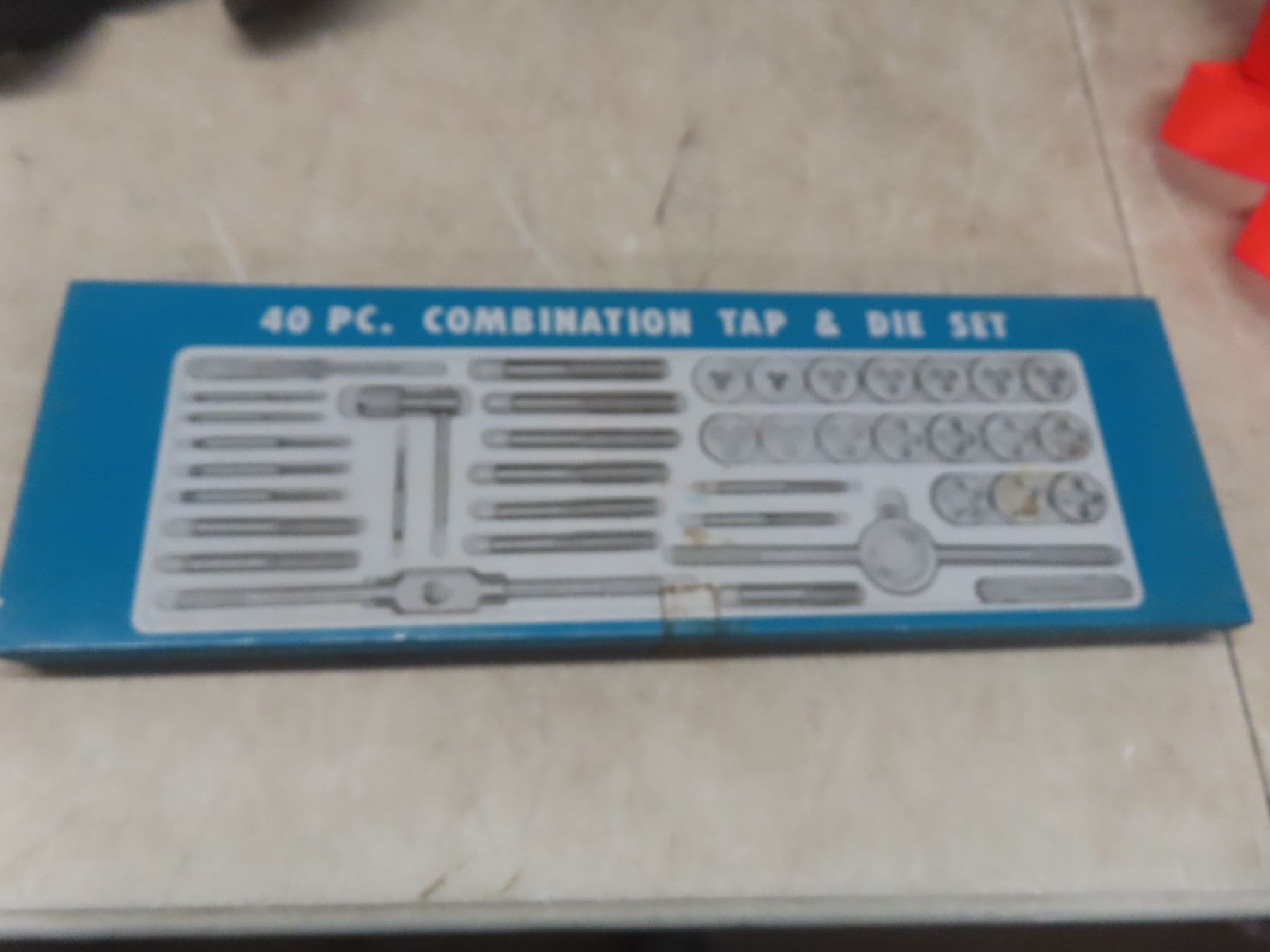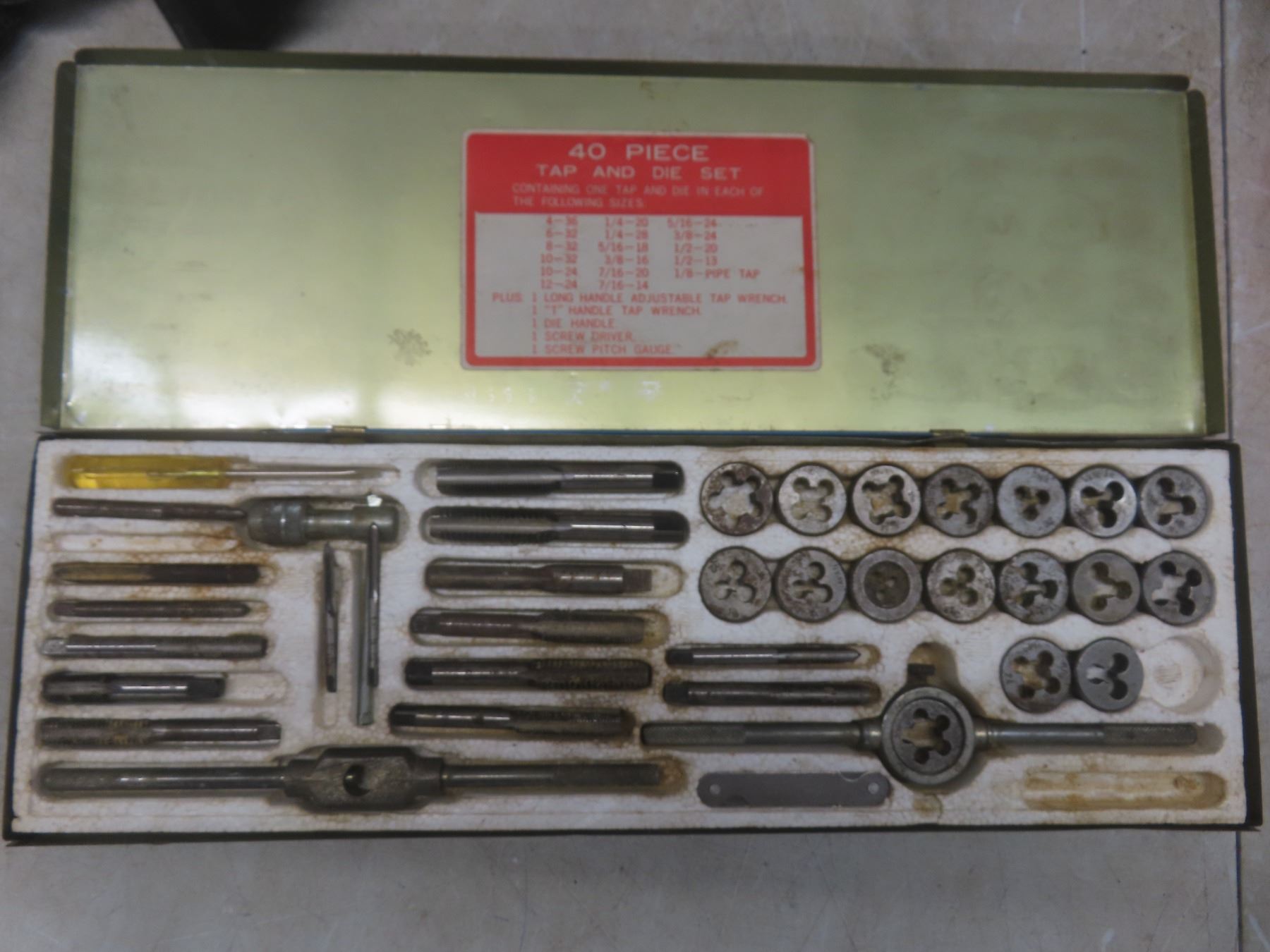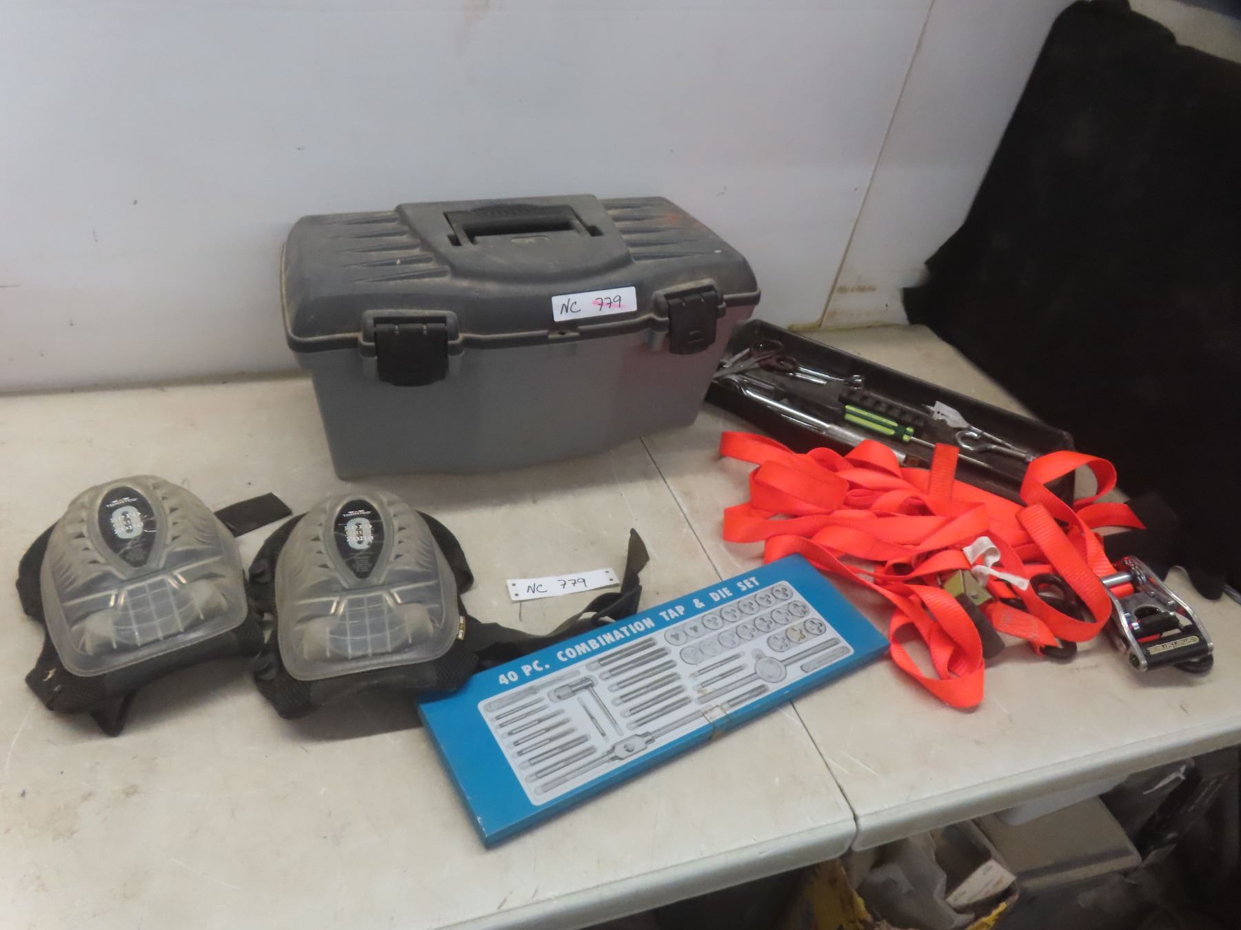 40 Piece Tap and Die Set, Plastic Tool Box, Ratchet Tie Down Straps, Knee Pads