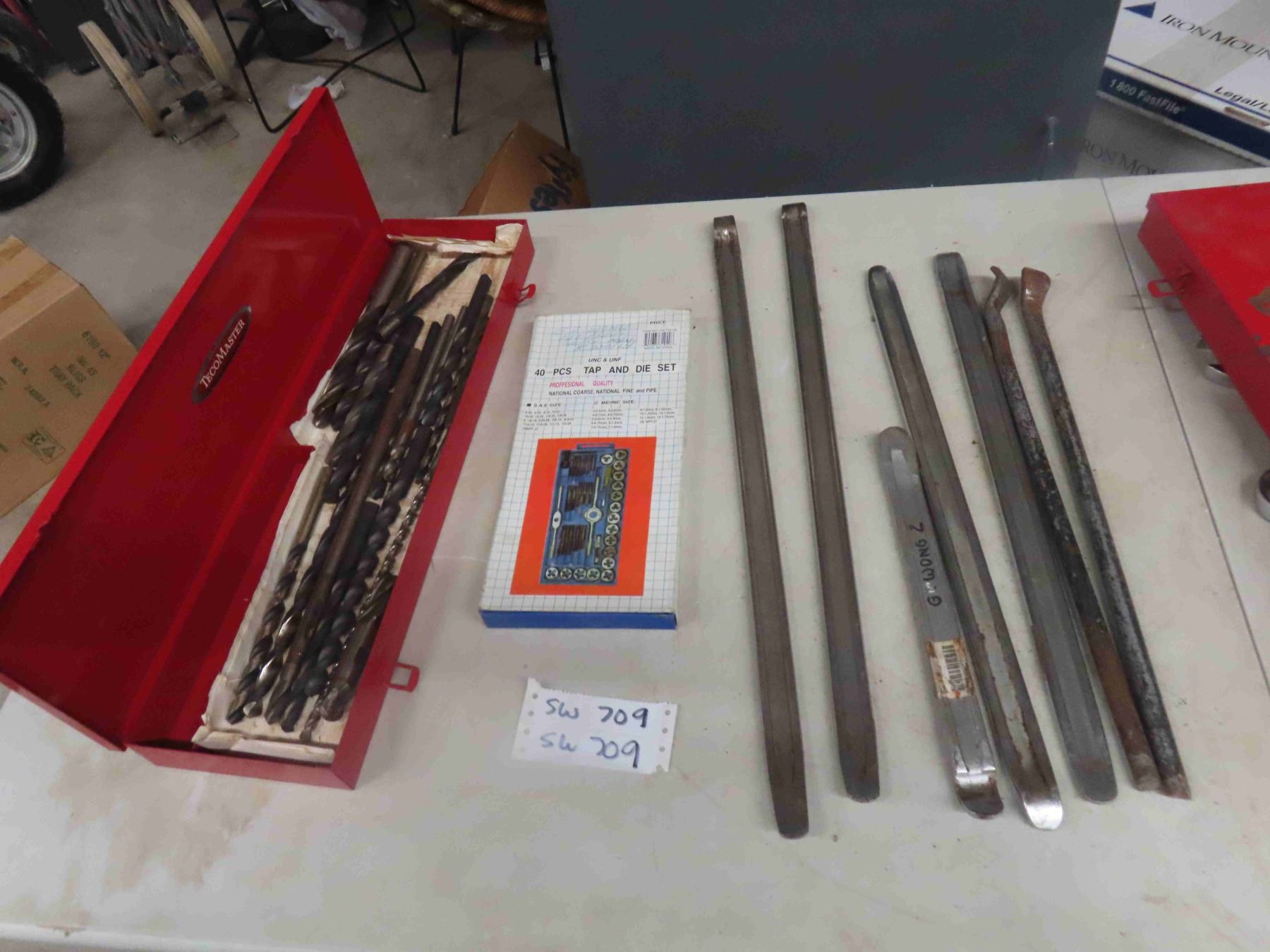 40pc Tap + Die Set, Drill Bits, Pry Bars