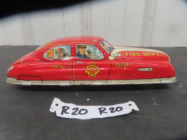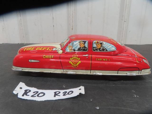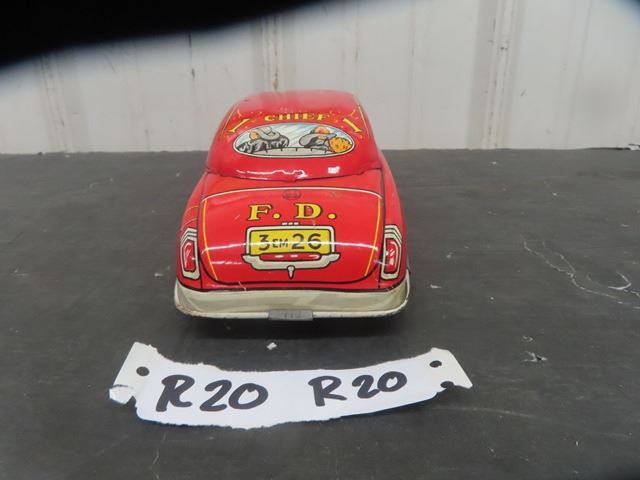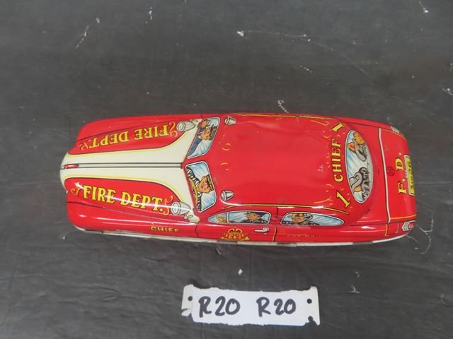 '40s Marx Tin Friction Chief Fire Department 3.5" x 4" x 11"