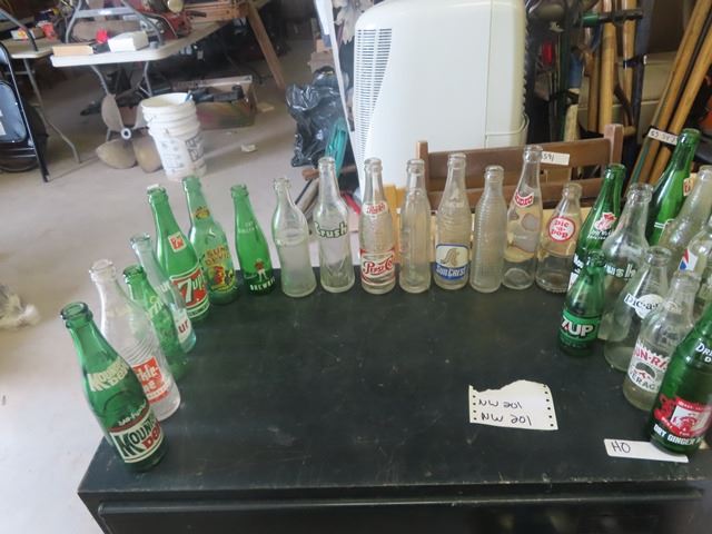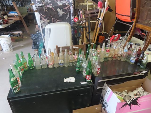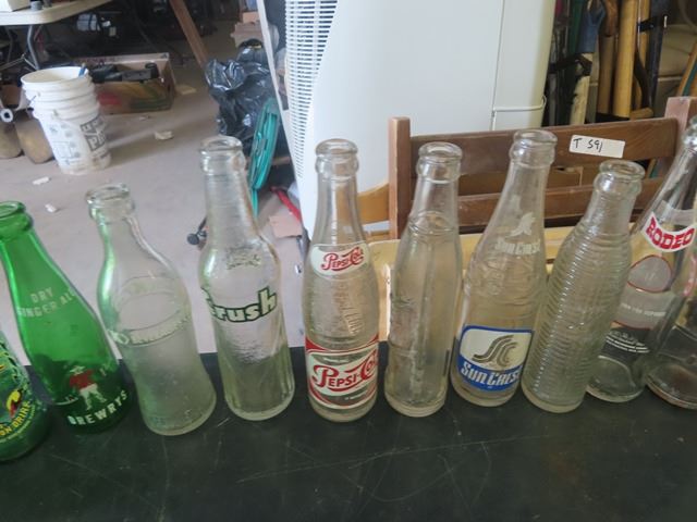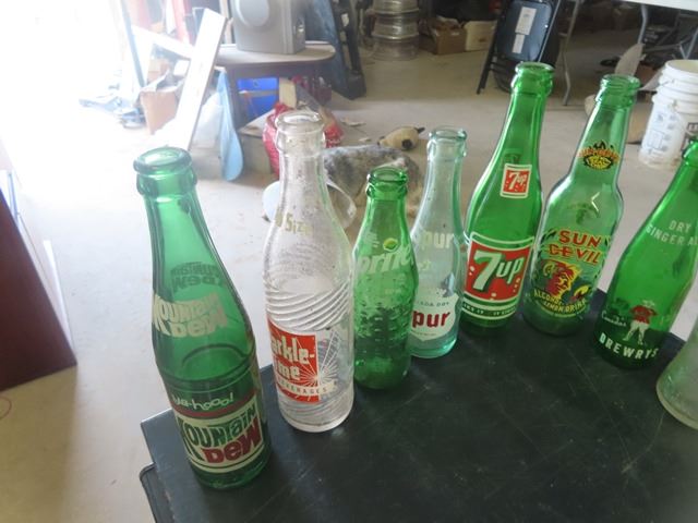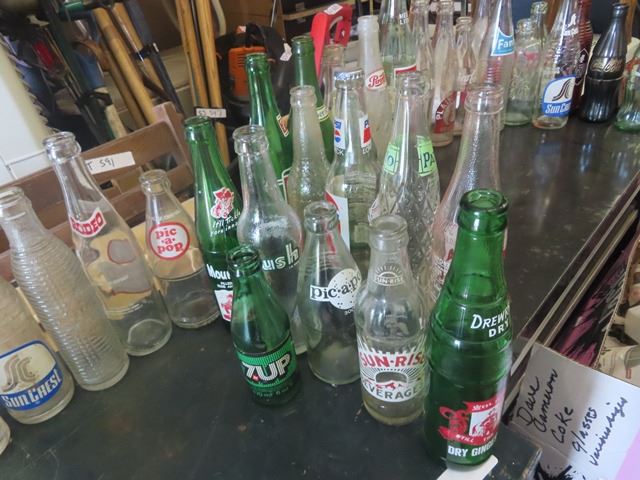 43 Old Pop Bottles ; Orange Crush, Sun Crest, Wyola, Drewery's plus more