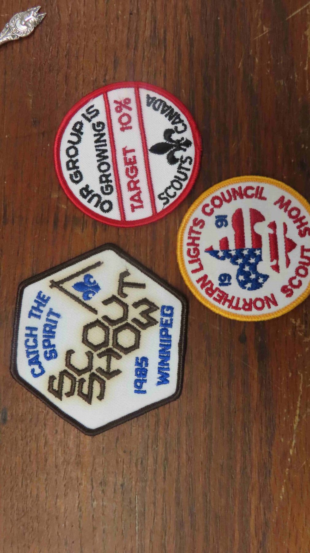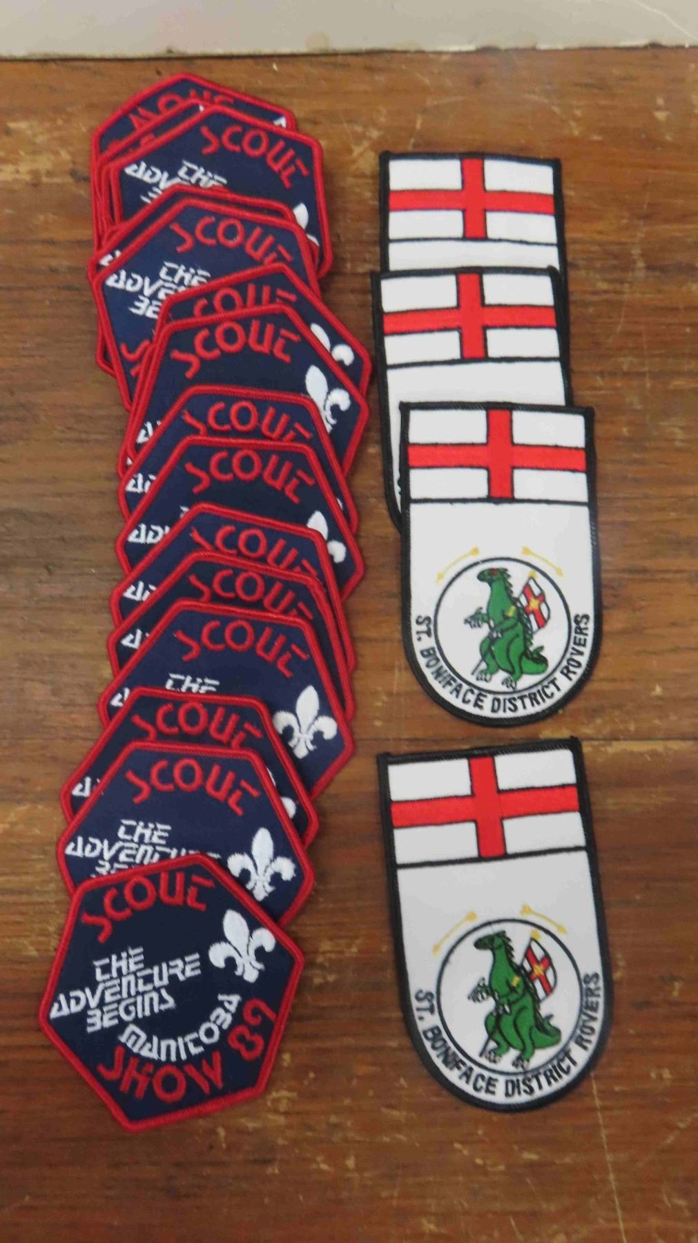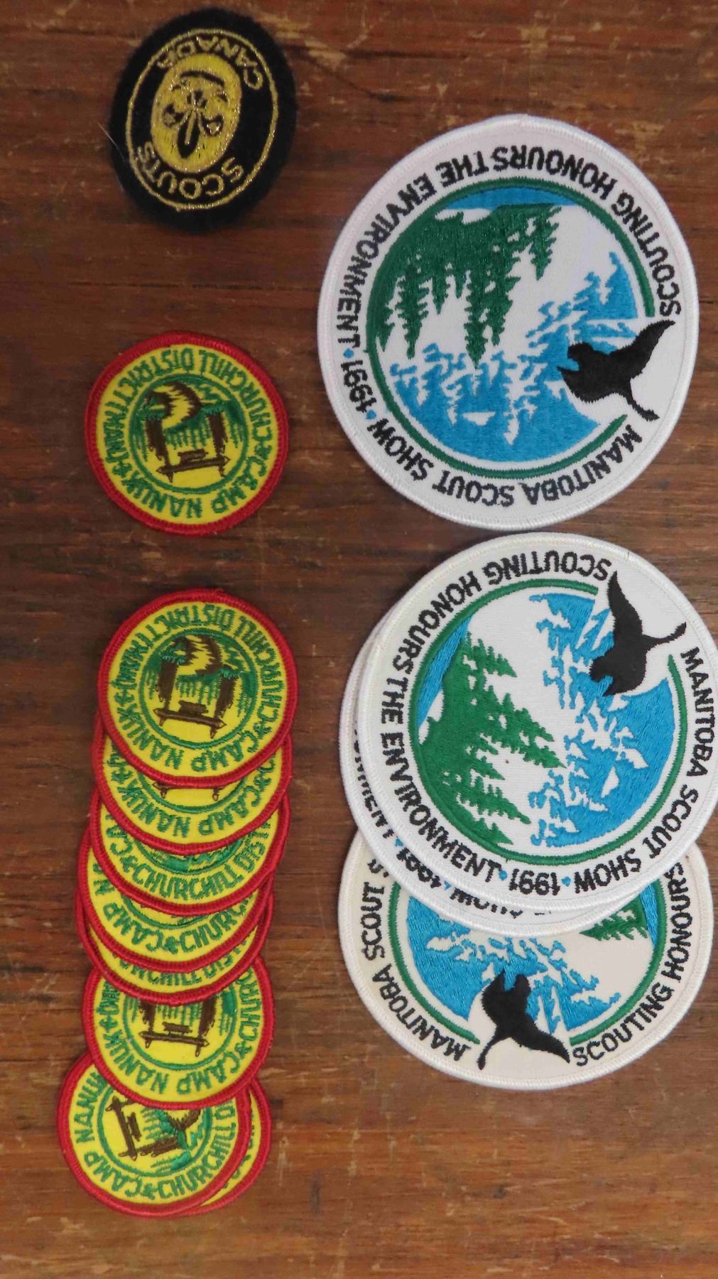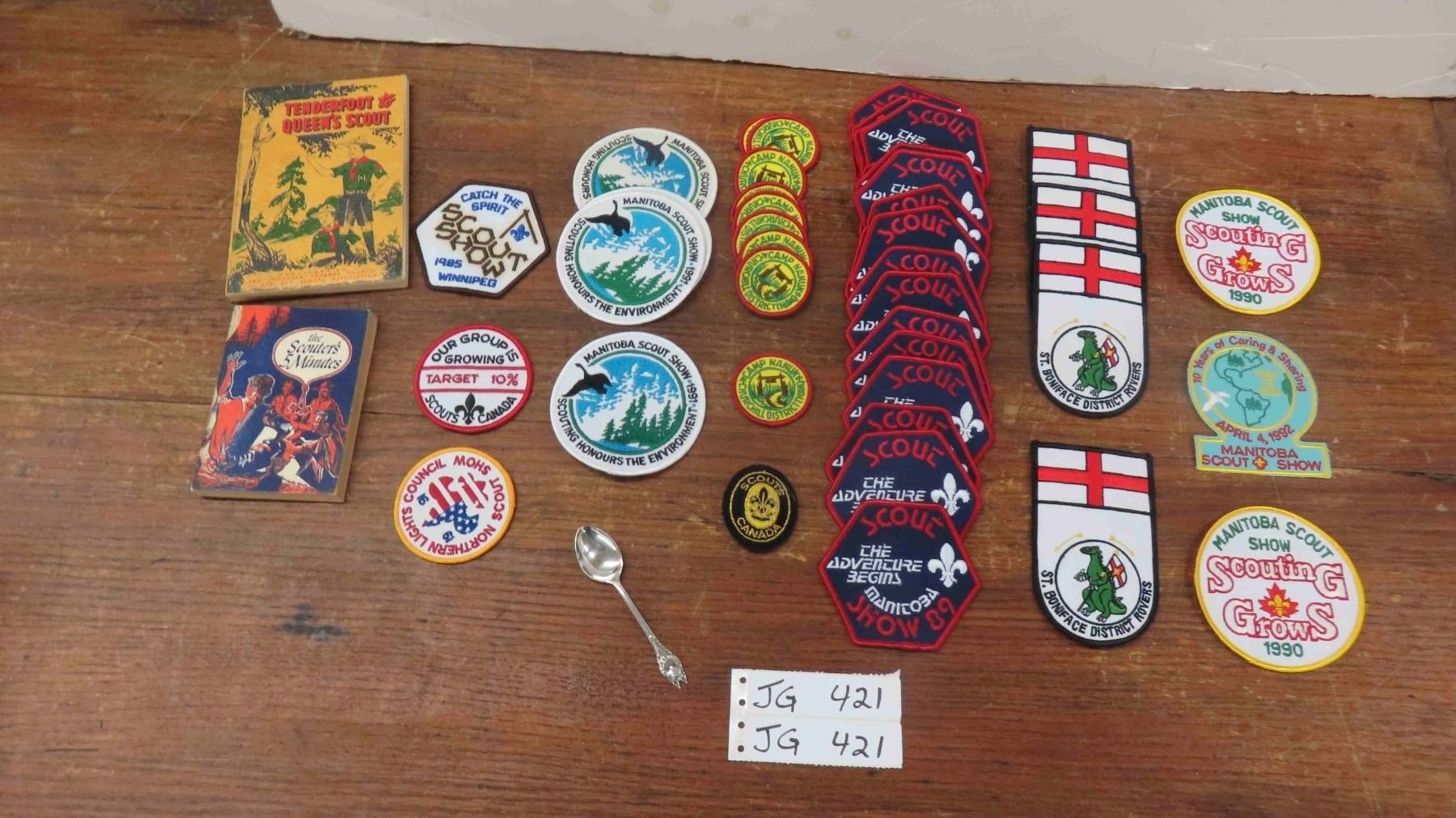 (44) Manitoba Scout Show + Rover Patches from 80s + 90s, Boy Scout Spoon & 2 Vintage Scout Books