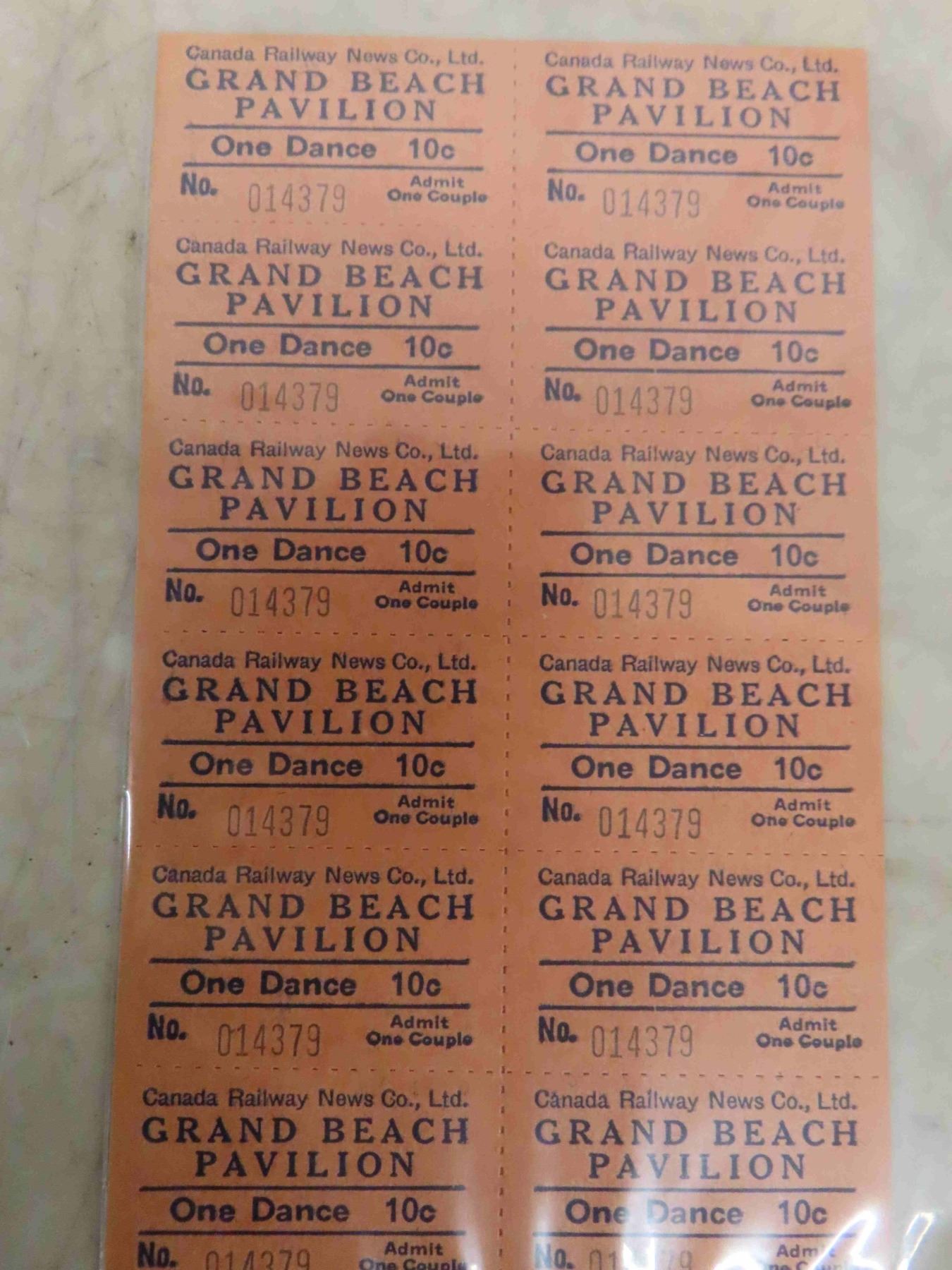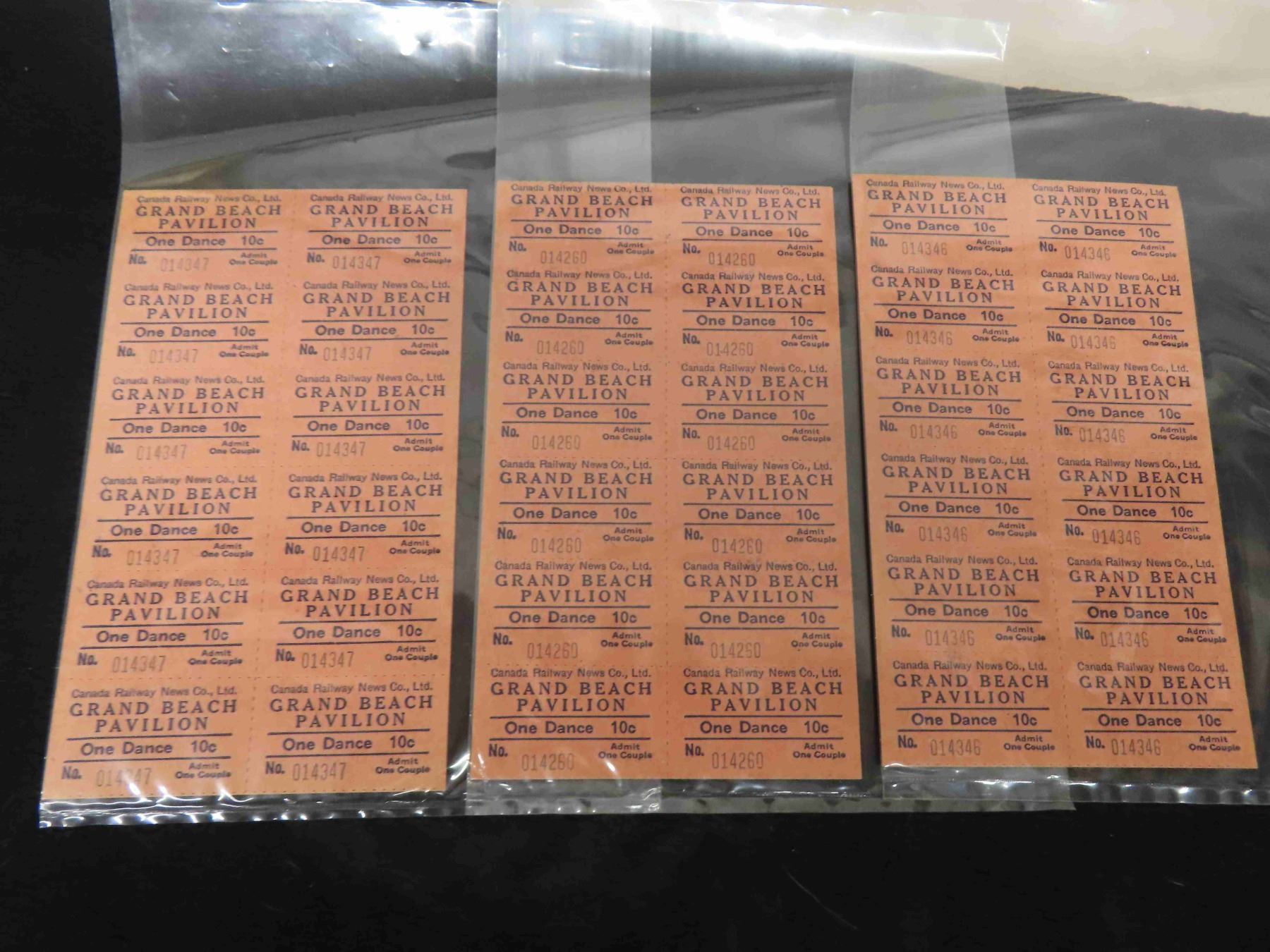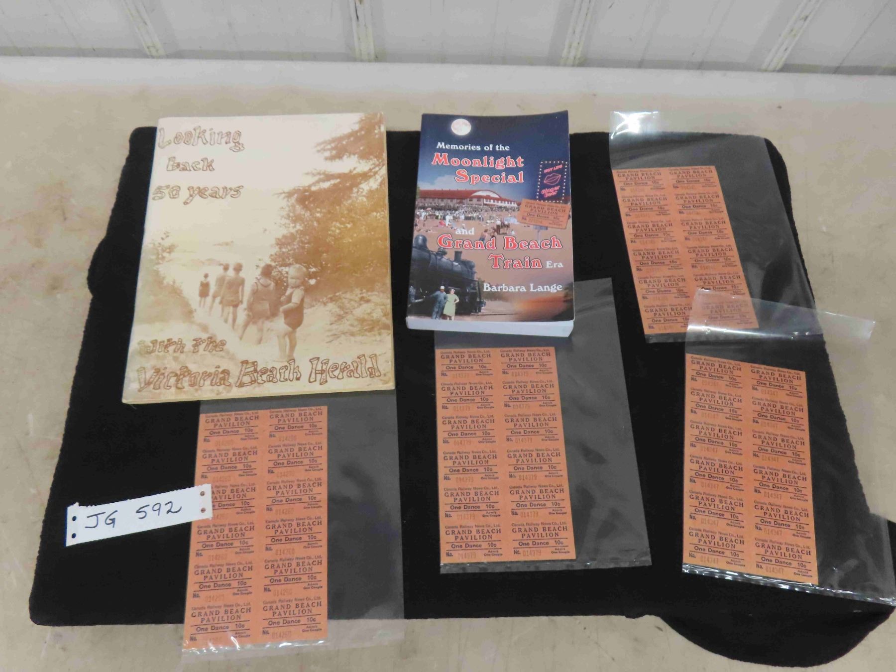 48 Vintage Grand Beach Pavilion 10 Cent Dance Tickets 4 Sheets of 12 Tickets , 2 Books 'Memories of the Midnight Special and Grand Beach Train Book' & 'Looking Back 50 Years with Victoria Beach Herald Book'