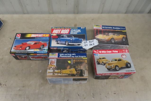 (5) 1:25 Scale Auto Models - 1 Factory Sealed ; '68 Corvette Roadster, '40 Willy Coupe/ Pick Up, Dragster Eddie Hills, '54 Chevy Sedan, '92 Camaro Z28