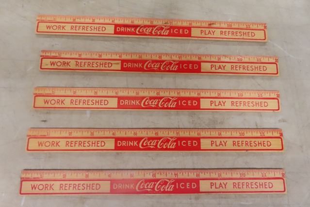 (5) 1949 Coca-Cola Wooden Rulers- New Never Used