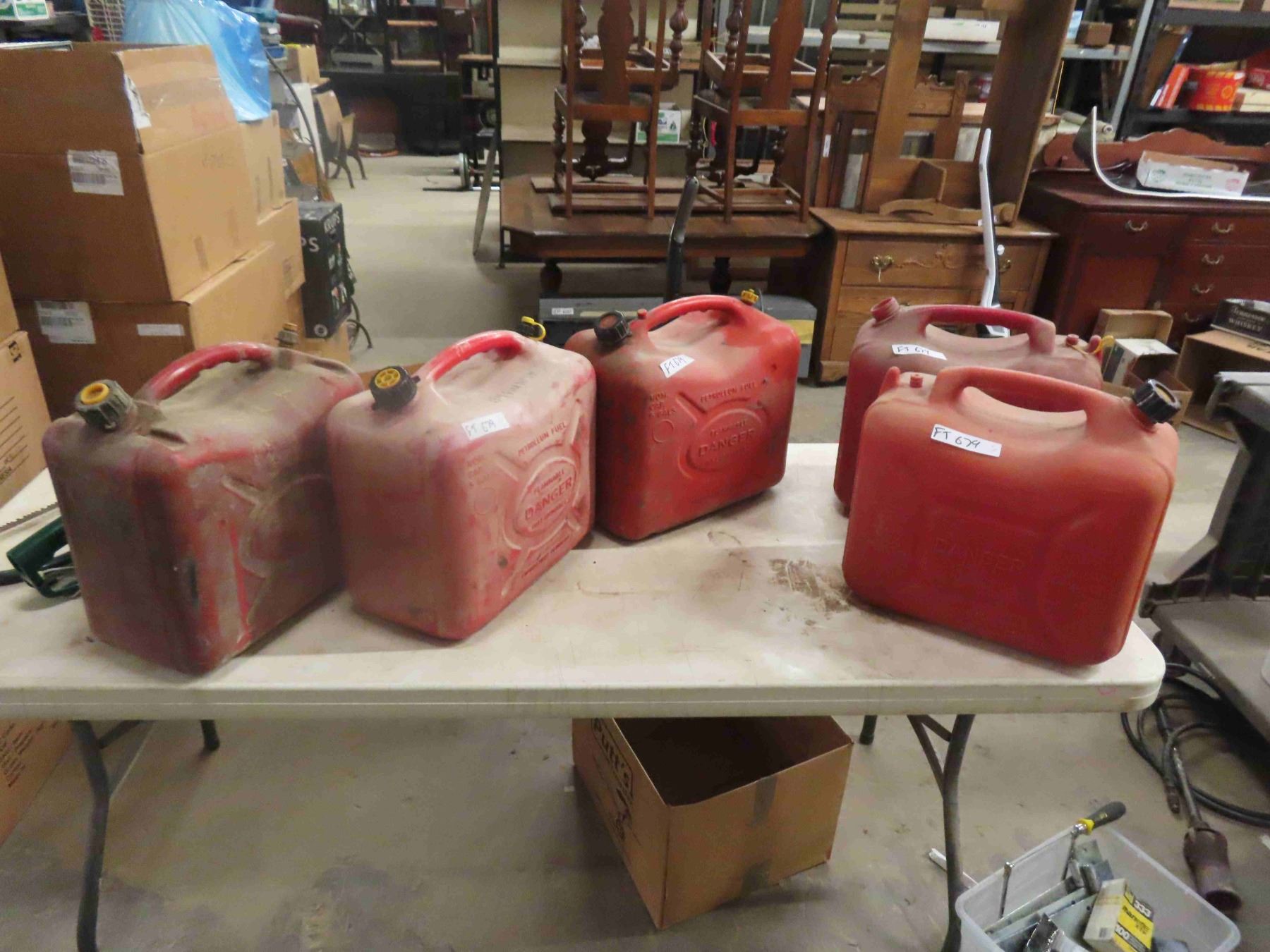 (5) 5 Gal Gas Cans - 1 missing all caps