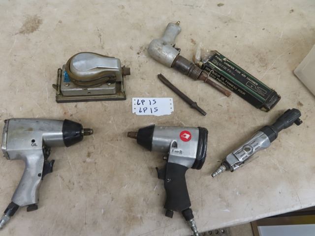 5 Air Tools - 2) 1/2 " Impact , Chisel, 3/8" Ratchet , Crimper & Attach