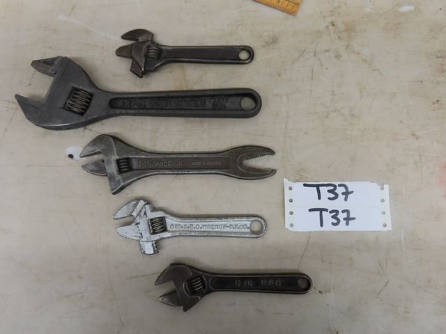 5 Antique Vintage Crescent Type Wrenches - Various Makers Including 1 with Alligator Wrench on Opposite End