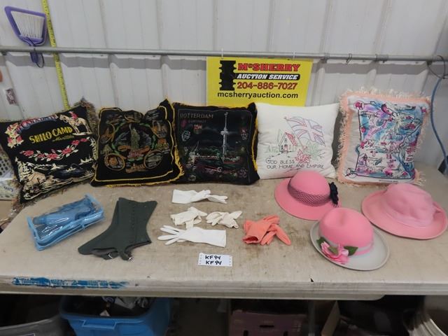 5 Assorted Souvenir Pillows, 3 Ladies Hats, Gloves, plus more