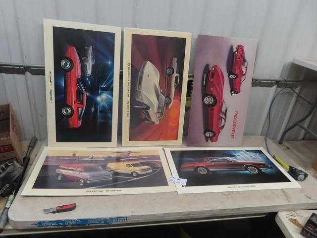 5 Auto Dealership Cardboard Vehicle Model Display 18" x 32" 1981 Corvette, 1982 Corvette, 1953+1984 Corvette, 1983 Monte Carlo, 1984 Chevy Van