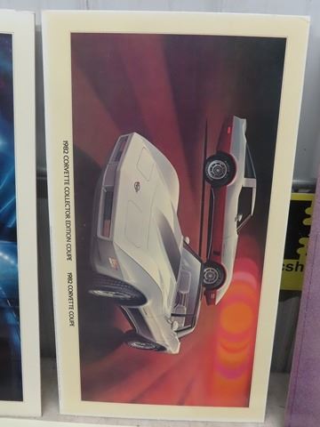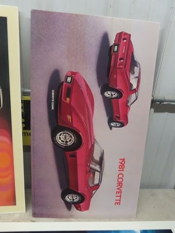 5 Auto Dealership Cardboard Vehicle Model Display 18  x 32  1981 Corvette, 1982 Corvette, 1953+1984