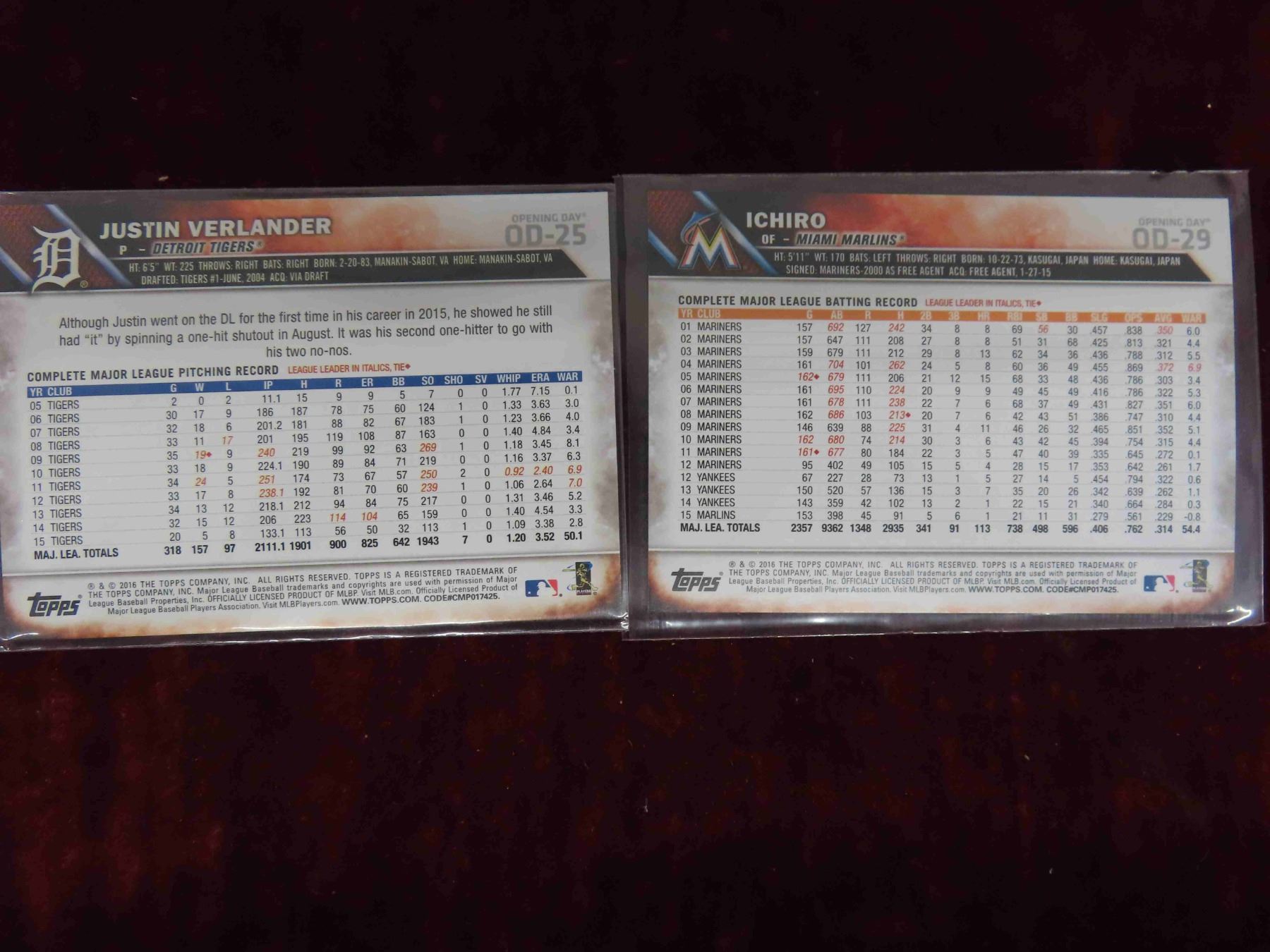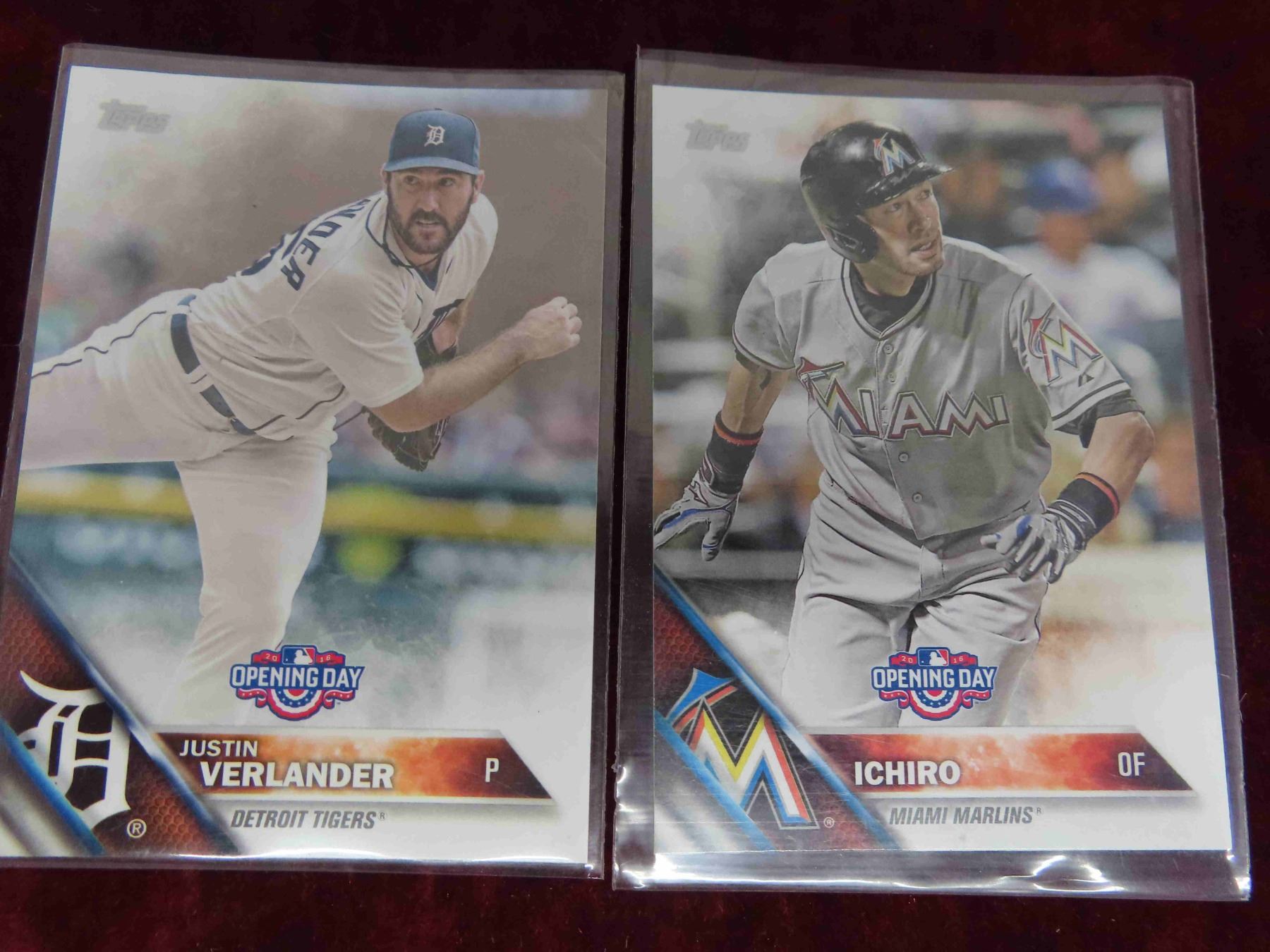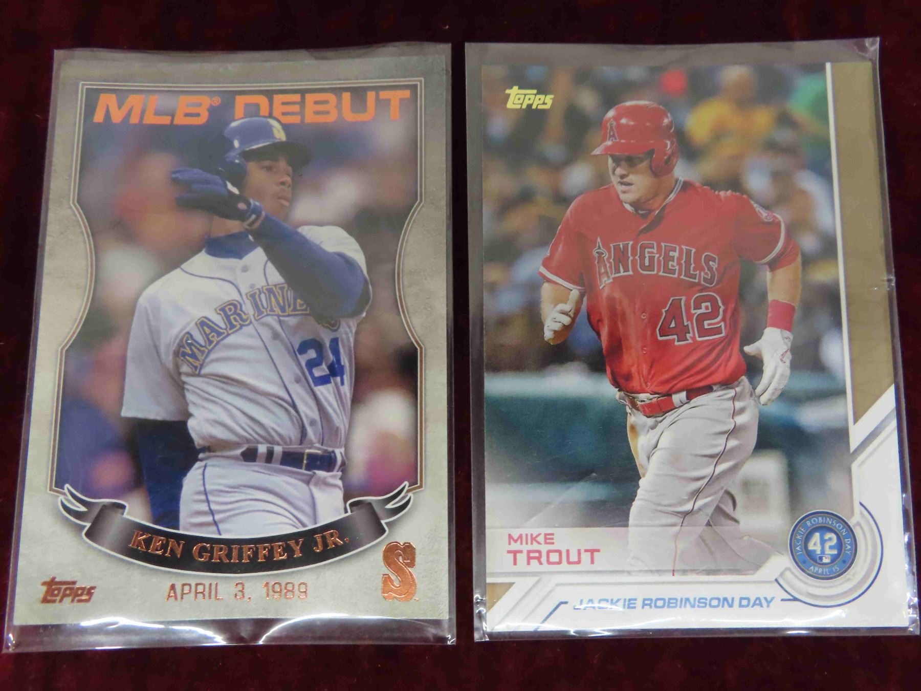 5 Baseball Cards : Mike Trout , Ichiro, Aaron Judge, Justin Verlander, Ken Griffey Jr