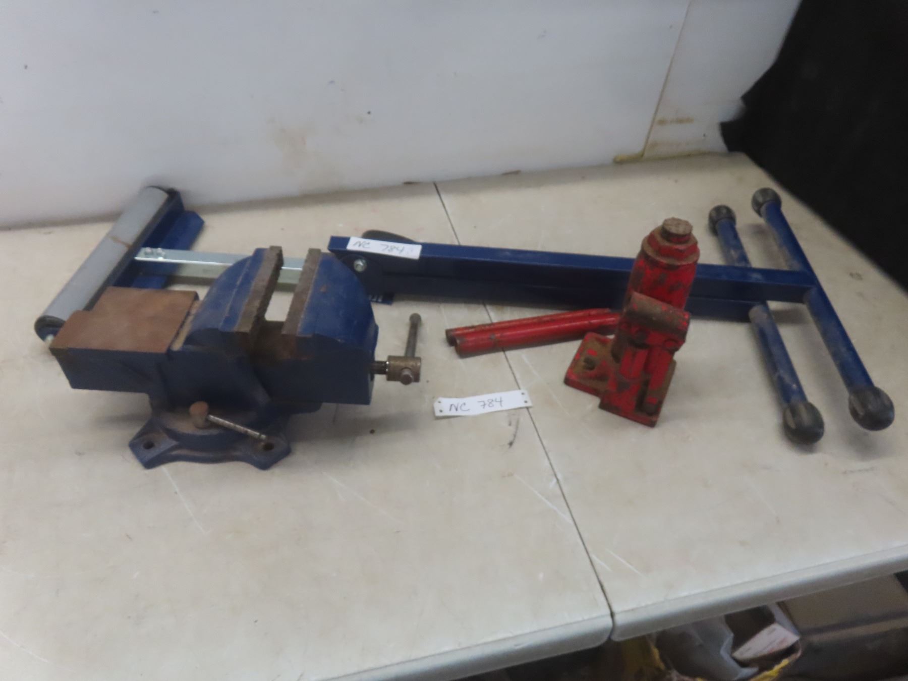 5'' Bench Vise, Table Saw Adjustable Roller Stand and Hydraulic Jack 1 1/2 Ton
