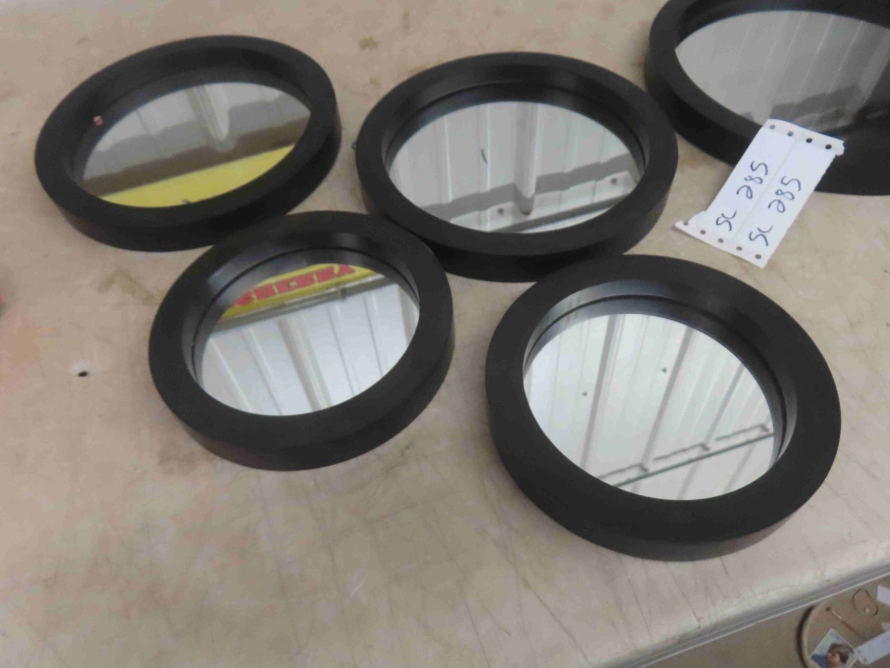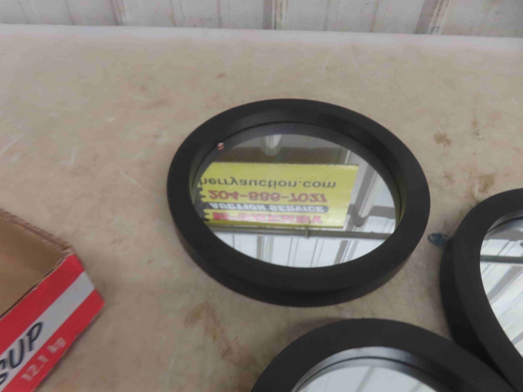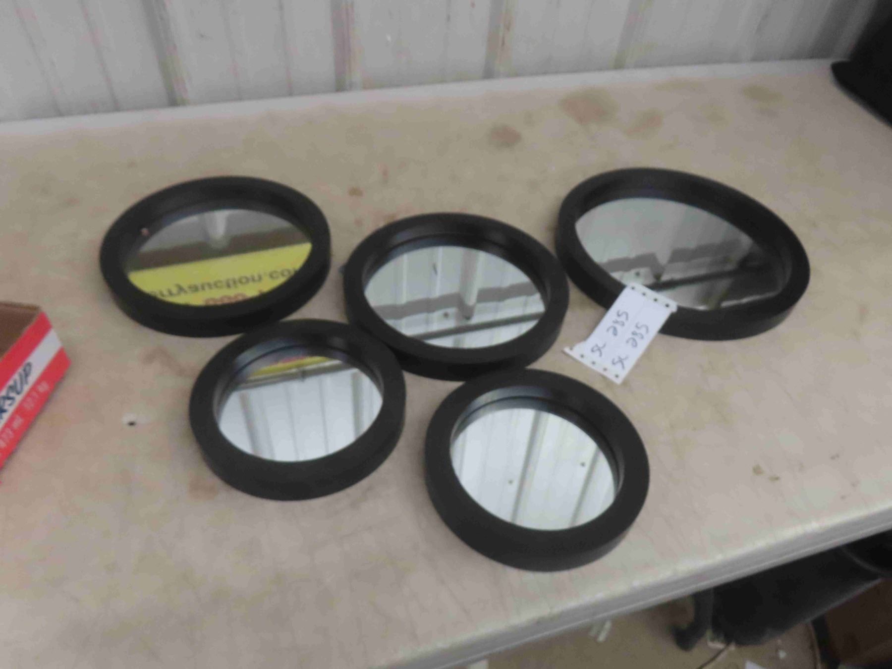 5 Black Round Mirrors 7'' Diameter , 9'' Diam, 11'' Diam, VF Condition