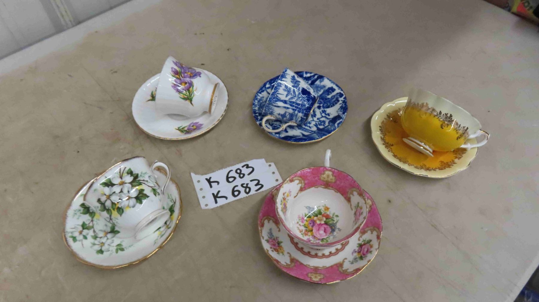 5 Bone China Tea Cups ; Royal Albert, Winsor & Crown Derby