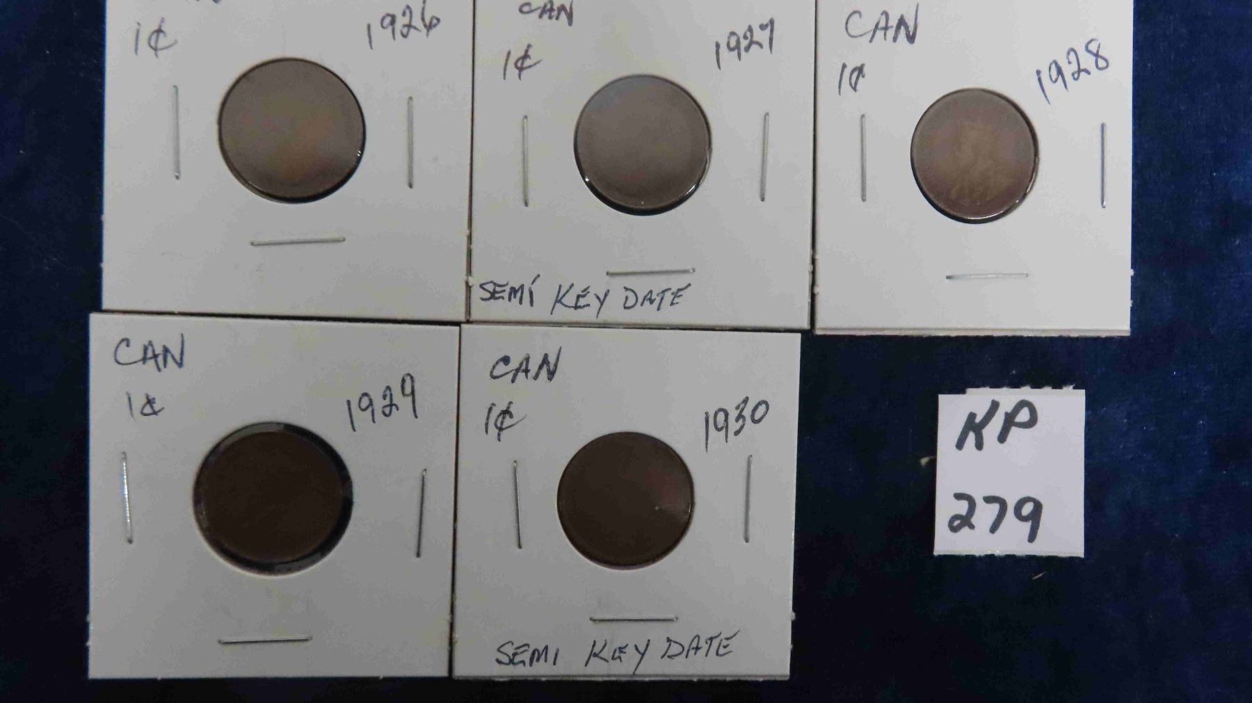 (5) Canada Small Cents 1926, 1927, 1928, 1929, 1931