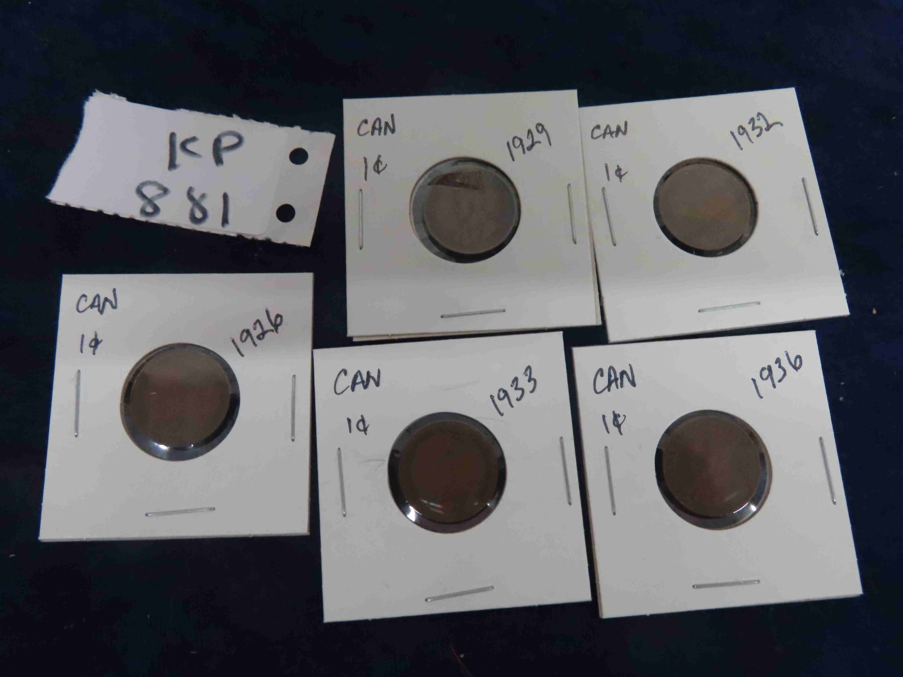 5 Canada Small Cents 1926, 1929, 1932, 1933, 1936