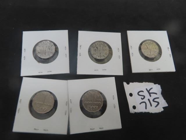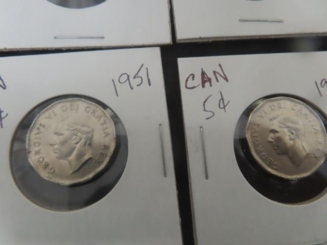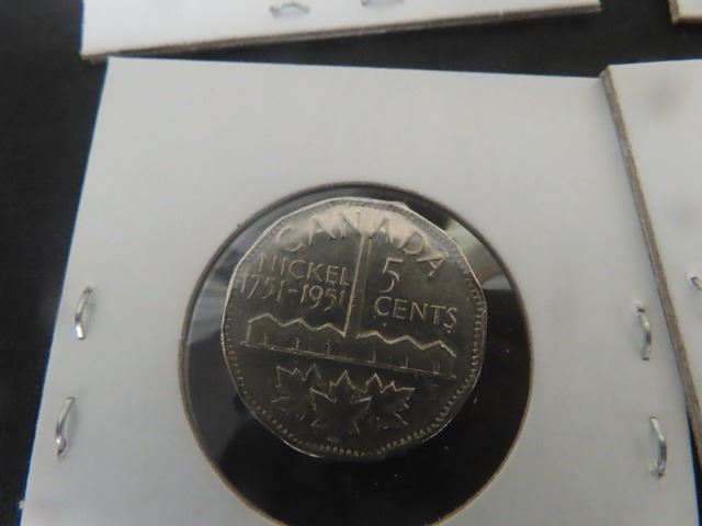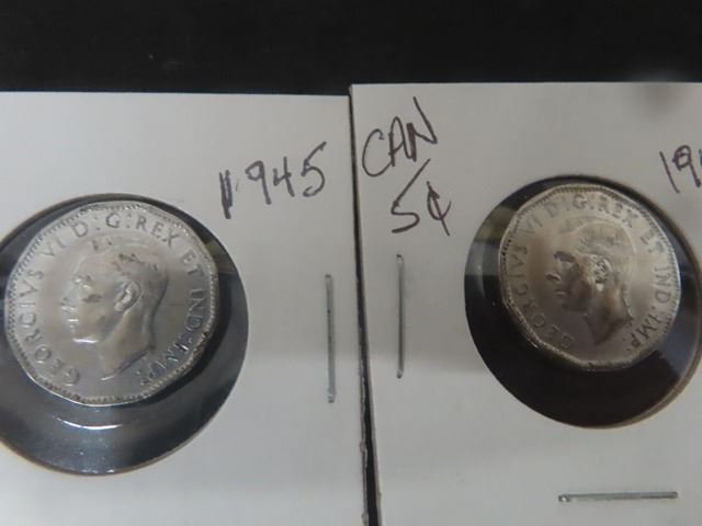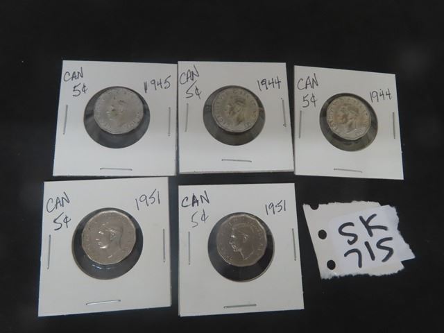 5 Canadian Nickels ; (2) 1944, (2) 1951, (1) 1945