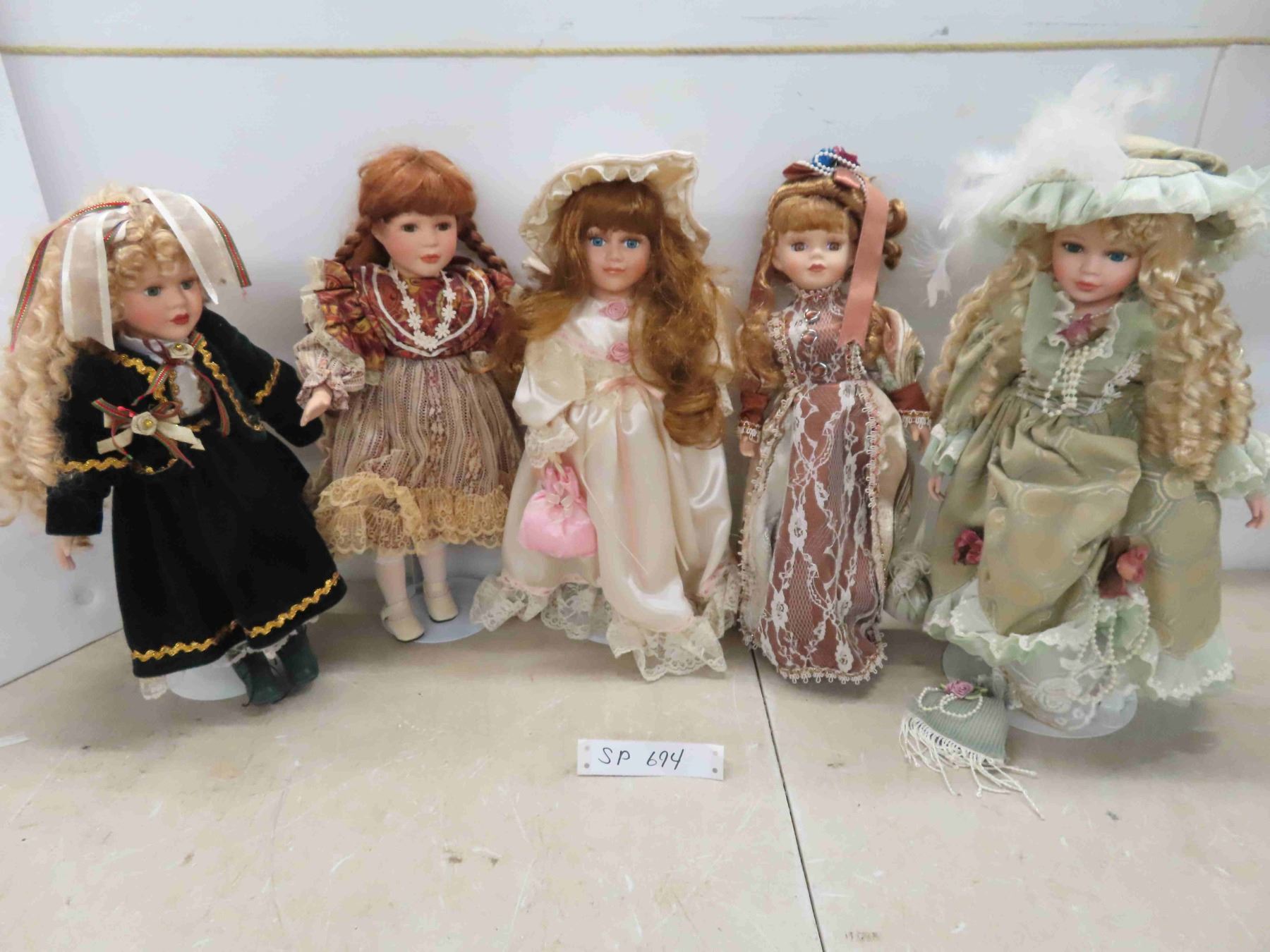 5 Collector Porcelain Dolls Approx 17'' Tall with Stands